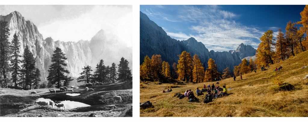 V Mojstrani, pred Slovenskim planinskim muzejem, bo na velikih panojih razstavljenih 10 izbranih parov. Da bi ta izjemen pogled v svet črno-belih fotografij in njenih sodobnejših različic lahko videlo čim večje število občudovalcev Triglavskega narodnega parka, bo razstava v letu 2022 v različnem obsegu in izboru fotografskih parov gostovala po narodnem parku in širše. Od 13. aprila 2022 dalje je del razstave na ogled pred Infocentrom Triglavska roža Bled, v mesecu juniju bo gostovala v Bohinju, pred Centrom Triglavskega narodnega parka v Stari Fužini, v juliju mesecu pa se bo selila v Trento, pred Informacijsko središče Dom Trenta. V mesecu septembru bo na ogled v Tolminu in ob kolesarski poti Alpe Adria v mestecu Resiutta (Na Bili) v Italiji.