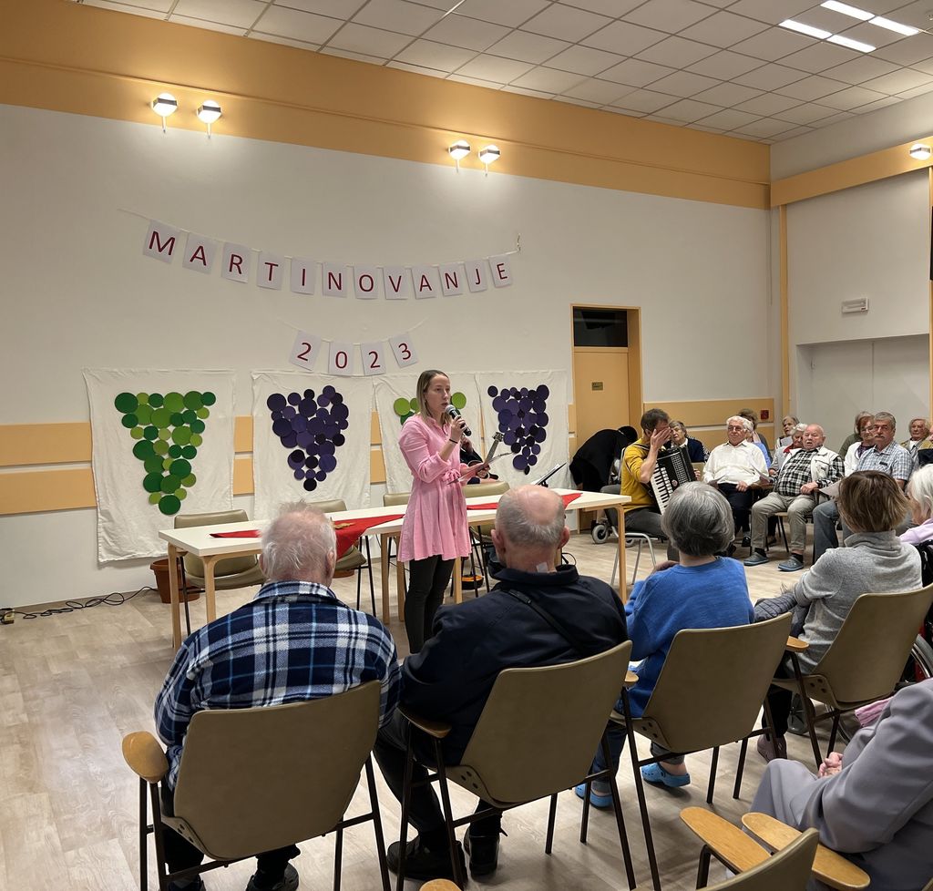Na koncu smo vsi skupaj zapeli še slovensko vinsko himno Kol'kor kapljic tol'ko let in nazdravili s kozarčkom mladega vina. Prešerne volje smo se poslovili, v nedeljo (12. novembra) pa bodo stanovalci postreženi tudi s tradicionalnim Martinovim kosilom.