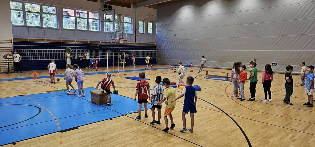 Otroci so se skupaj z Lipkotom zabavali in preživeli šolsko uro na spretnostno-zabavnih poligonih.