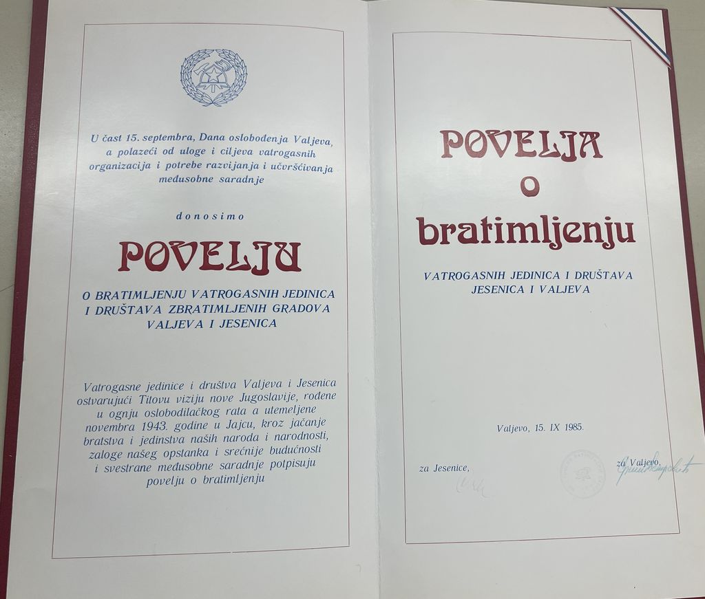 Pomembno in nostalgično obarvano je bilo tudi srečanje s predstavniki prostovoljnih gasilskih društev: z Vladislavom Milivojevićem, Slobodanom Kolarevićem in Sašo Tadićem, saj so prav oni zaslužni za preteklo sodelovanje in pobude za ohranjanje stikov. Prostovoljna gasilska društva z Jesenic in Valjeva so 15. oktobra 1985 podpisala listino o pobratenju, saj so želela uradno potrditi medsebojno sodelovanje. Tudi v zadnjem obdobju so gasilska društva iz obeh občin ohranjala vezi.