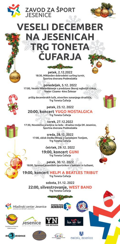 Sprevod jeseniških športnikov bomo pripravili v petek, 30.12.2022 ob 18:00. Zbor vseh sodelujočih bo ob 17:45 na parkirišču pred OŠ Prežihov Voranc na Jesenicah.