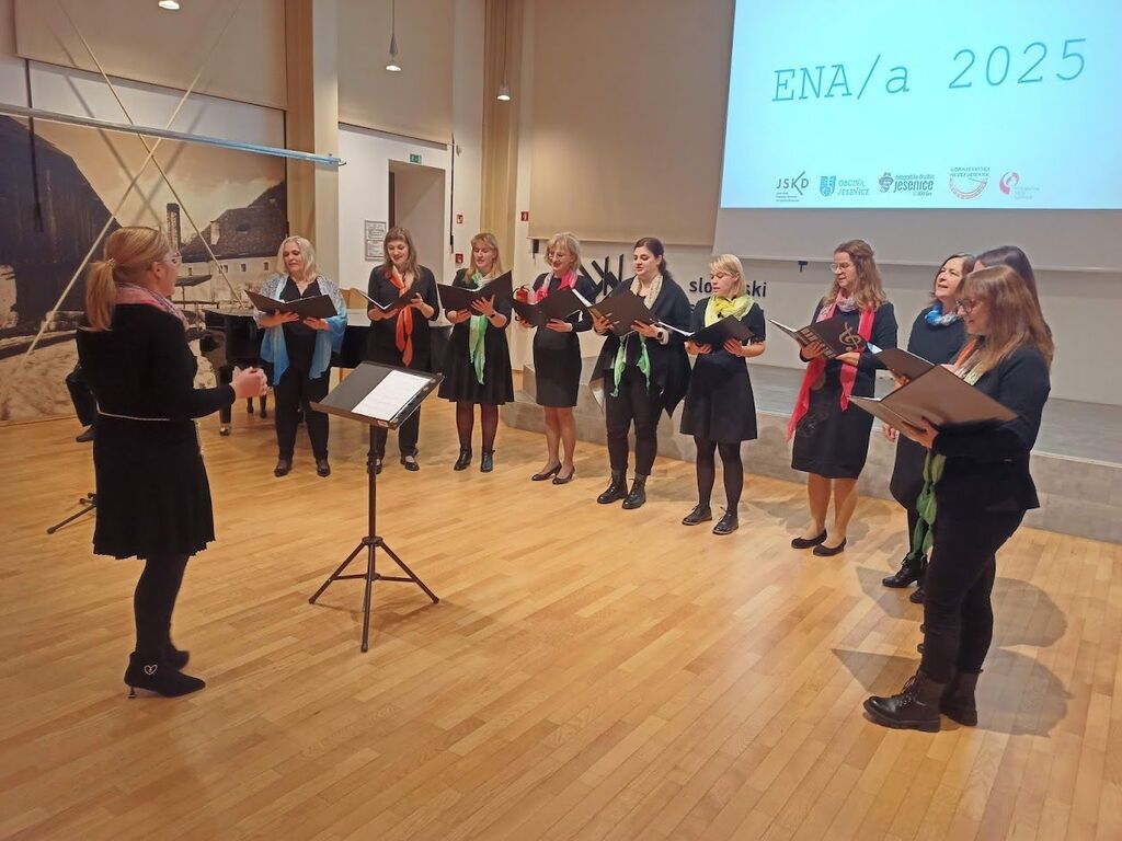 Odprtje razstave so glasbeno obogatile članice ženskega učiteljskega pevskega zbora Prežihove Mete Osnovne šole Prežihovega Voranca Jesenice pod vodstvom Metke Gregorič.