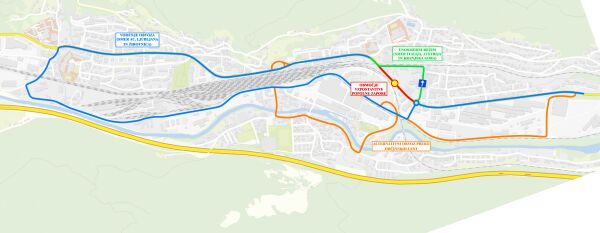 - Promet v smeri proti Italiji, Avstriji in Kranjski Gori bo preusmerjen na občinski cesti po Delavski ulici (LC 152311) in Ulici Viktorja Kejžarja (LC 152141), kjer bo urejen enosmerni režim.