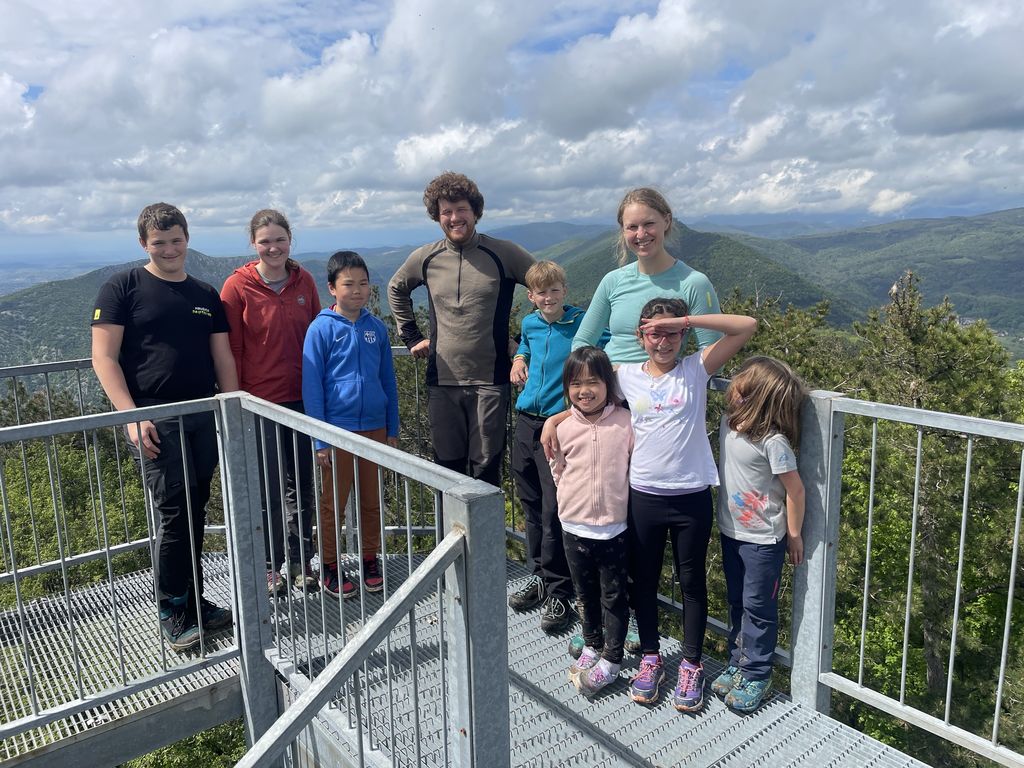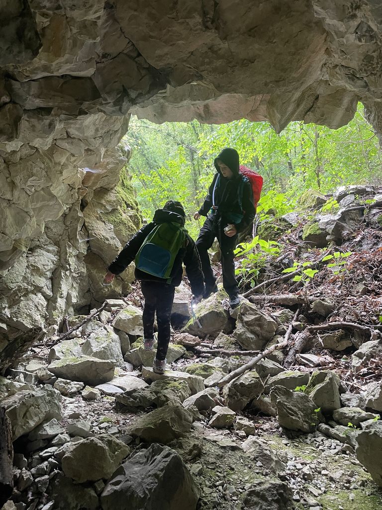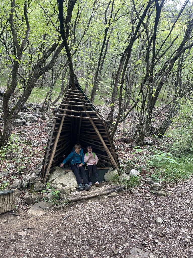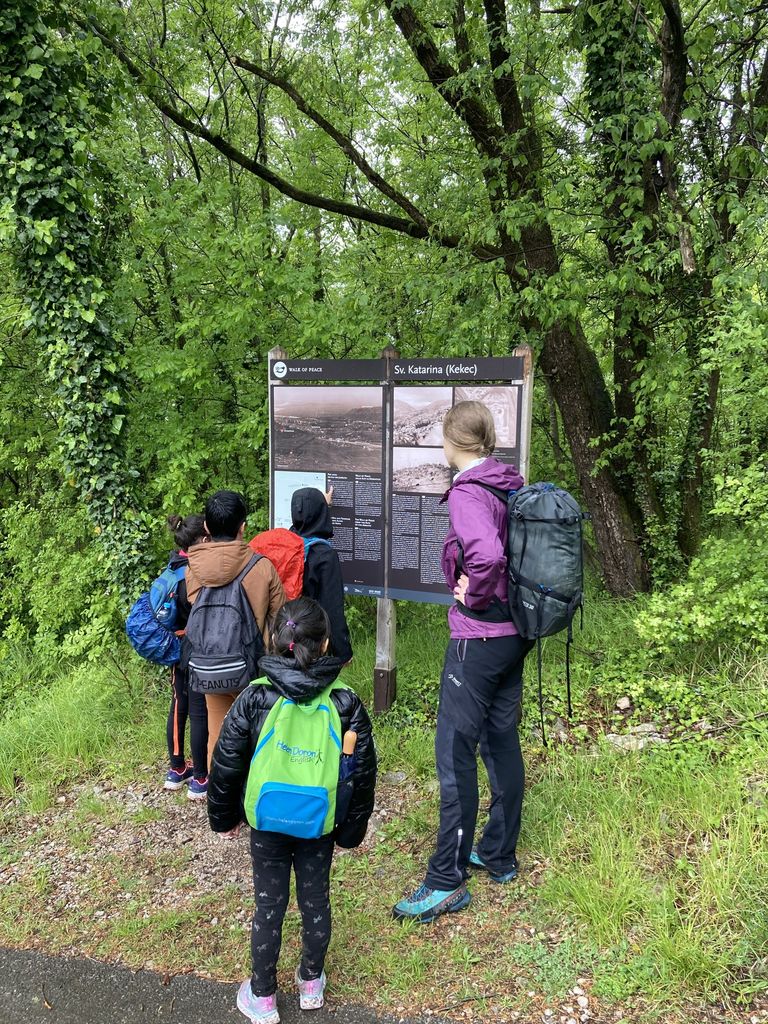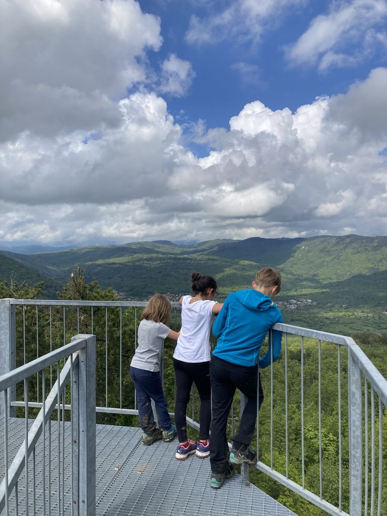 Tako smo odšli proti Kekcu in po poti odkrili še star vojaški rov, ki smo ga izkoristili za počitek na suhem. Med pitjem čaja in malicanjem na Kekcu pa se je vreme izboljšalo, posijalo je še sonce, prijazni natakar pa nam je dal idejo, da lahko izlet podaljšamo na vrh Škabrijel (646m), kamor smo po malici tudi odpravili. Na vrhu smo z razglednega stolpa opazovali naš prvotni cilj in se vsi skupaj strinjali, da je bil Škabrijel preko Kekca boljša odločitev.