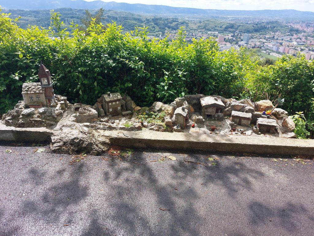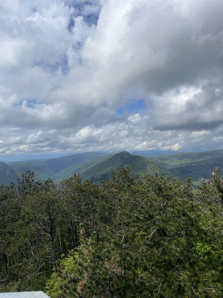 V Bohinju nas je pozdravila klasična nizka oblačnost, na drugi strani gorenjsko-primorskega predora pa ne klasična oblačnost z dežjem. Malce začudeni smo izstopili na postaji v Solkanu in se kljub dežju podali proti Sveti Gori. Po nekaj minutah hoje smo se odločili, da raje poiščemo plan B. Našli smo nižji hrib z odprto restavracijo na njegovem vrhu in sklenili, da gremo raje tja, saj bi bili na tri ure dolgi poti do Svete Gore premočeni do kože, na vrhu pa se tudi ne bi mogli nikjer pogreti.