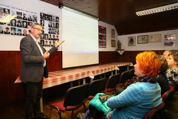 V gasilskem domu na Koroški Beli je poveljnik civilne zaščite RS Srečko Šestan predstavil pripravljenost na naravne nesreče in načrte za območje nevarnih plazov nad Koroško Belo.