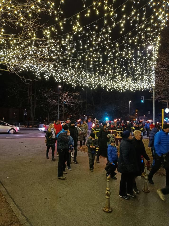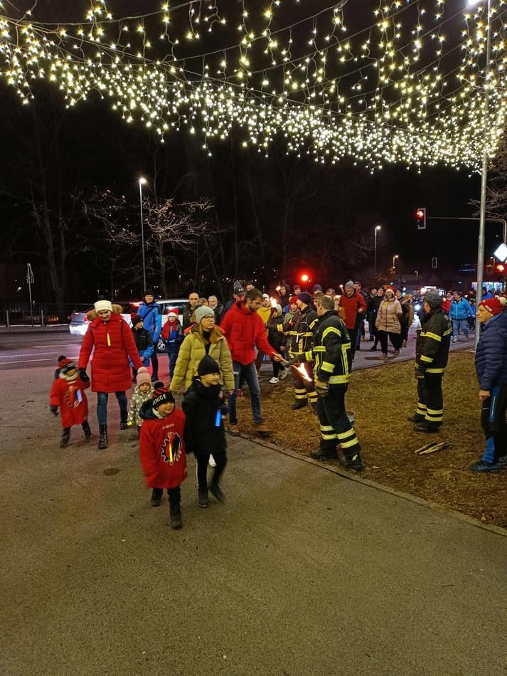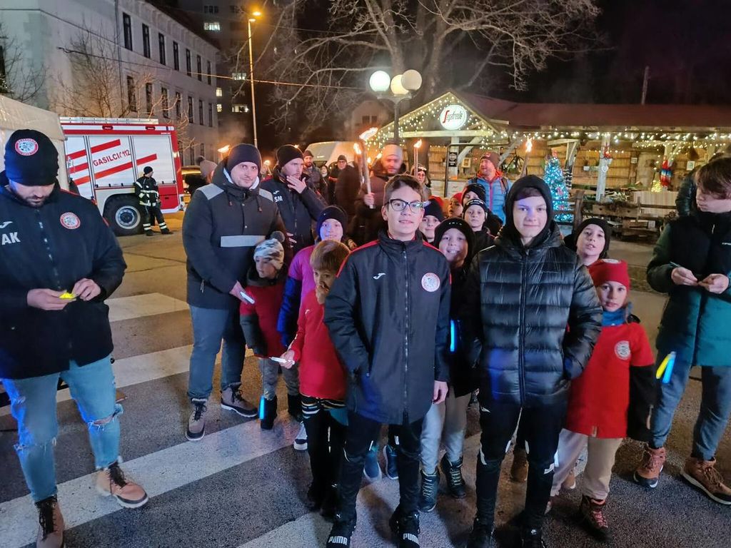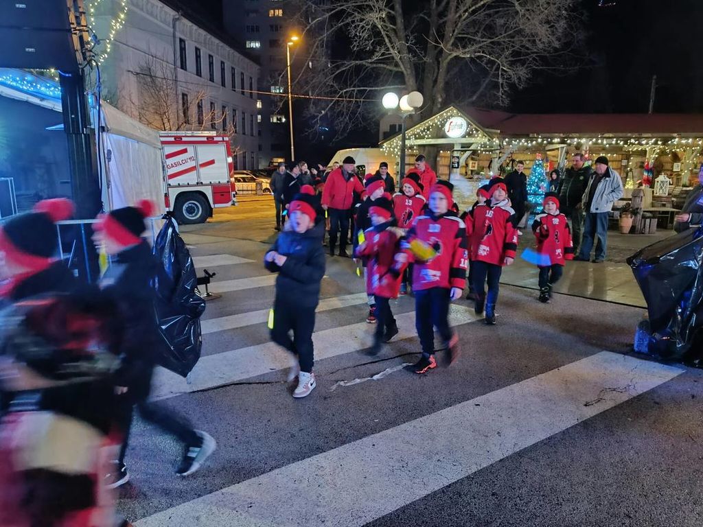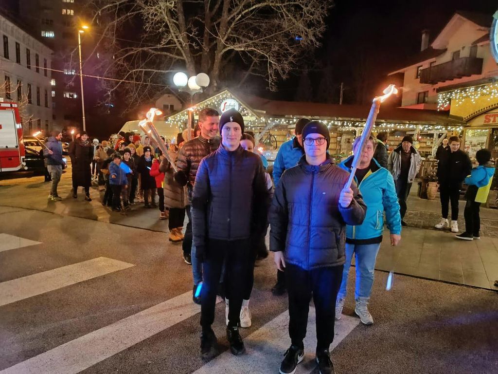 Na tradicionalnem 7. sprevodu z baklami in lučkami so športniki s starši in navijači pozdravili Jesenice. Ritem sprevodu so dajali bobnarji pihalnega orkestra Jesenice - Kranjska Gora.