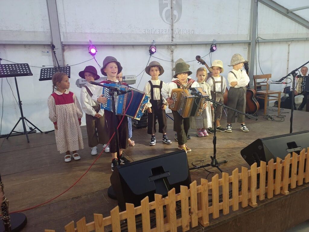 Člani Kulturno športnega društva Hrušica so bili v soboto, 16. avgusta, v okviru prireditev Jeseniško poletje 2025 organizatorji Slovenskega večera. Najprej so za prisrčen nastop poskrbeli najmlajši člani folklorne skupine Drobižki, ki pod vodstvom Mojce Čufer deluje v okviru Vrtca Jesenice – enota Frančiške Ambrožič Hrušica. Otroci, stari od tri do šest let, so pogumno predstavili pesmi in plese iz bogate slovenske ljudske zakladnice.