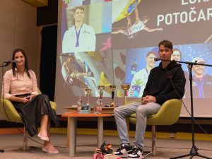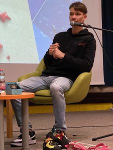 Luka je vrhunski športni plezalec, ki je v svoji kratki športni karieri nanizal uspehe, o katerih sanjajo vsi športniki. Ker je Luka naš someščan in je bil v osnovni šoli učenec naše šole, smo ga povabili, da se je našim nadarjenim učencem in učencem športnikom, predstavil in povedal nekaj o plezanju in svojih uspehih. Z njim se je pogovarjala kar njegova starejša sestra, ki je učiteljica na naši šoli.
