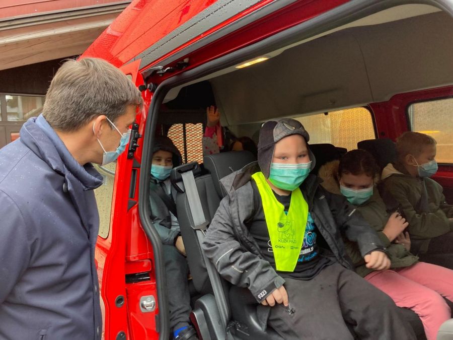 Župan Blaž Račič je na povabilo ravnateljice OŠ Poldeta Stražišarja Jesenice Aleksandre Valančič obiskal šolo in si ogledal najnovejšo pridobitev šole - nov šolski kombi za prevoz učencev, za katerega so finančna sredstva iz svojih proračunov zagotovile Občina Jesenice, Občina Žirovnica in Občina Kranjska Gora. Nakup vozila je znašal 36.035,99 €, od česar je 25.048,62 € zagotovila Občina Jesenice, preostanek (9.621,99 €) pa Občini Žirovnica in Kranjska Gora. Vozilo so županu v družbi ravnateljice ponosno razkazali učenci 1., 2. in 3. razreda. Kot zanimivost - zaposleni so izbiro o barvi vozila prepustili kar učencem. Ti so sicer glasovali neodločeno med dvema barvama, tako da je končni glas pripadel zaposlenim.
