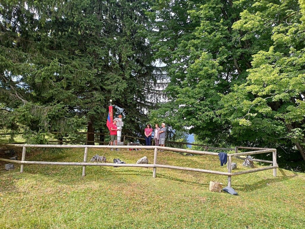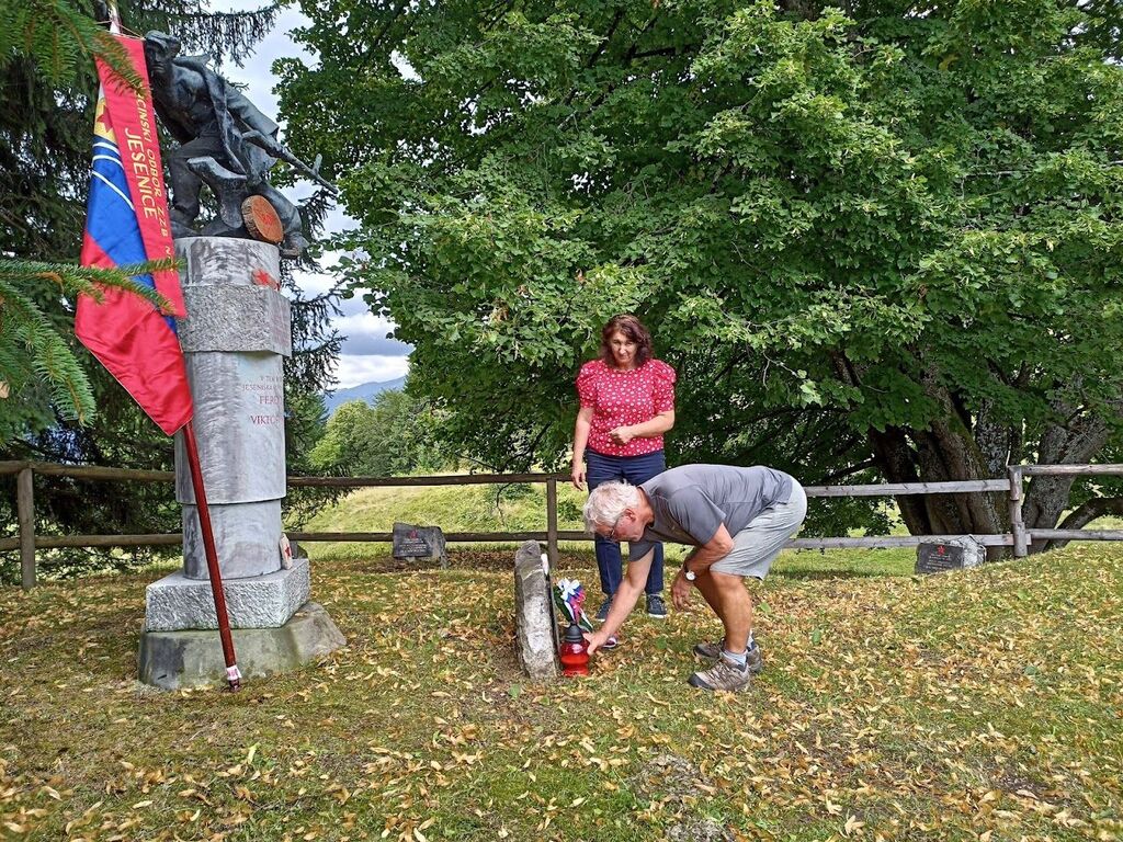 V sredo, 31. julija, sta najprej predstavnica Občine Jesenice Mateja Drobič in sekretarka Združenja borcev za vrednote NOB Jesenice Irena Kolbl k spomeniku na Obranci položili venec.