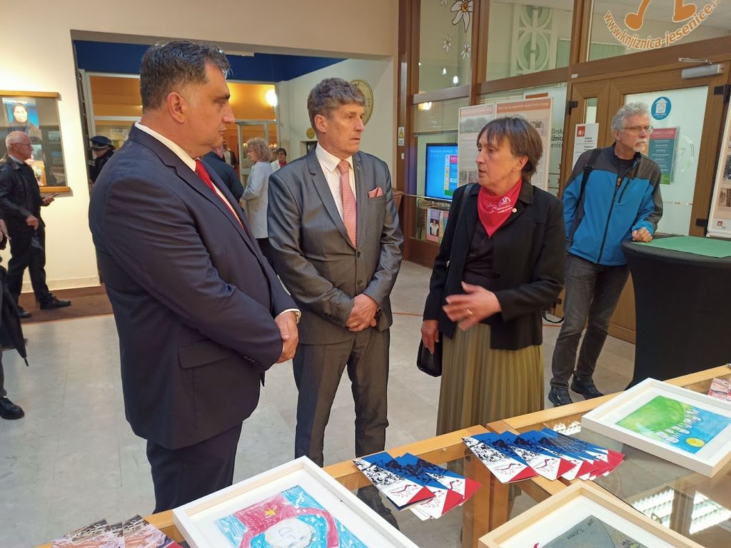 Učenci vseh jeseniških šol in Gimnazije Jesenice so za to priložnost narisali tudi risbe, v katerih so upodobili vojno preteklost ali pomen miru. Njihova dela so bila prikazana v projekciji med proslavo. Po zaključku prireditve so minister in nekateri gostje prejeli izvirne risbe kot darilo, kopije na panojih pa so razstavljene v avli Gledališča Toneta Čufarja, kjer bodo na ogled do konca maja 2025.