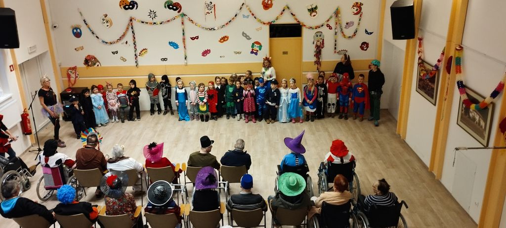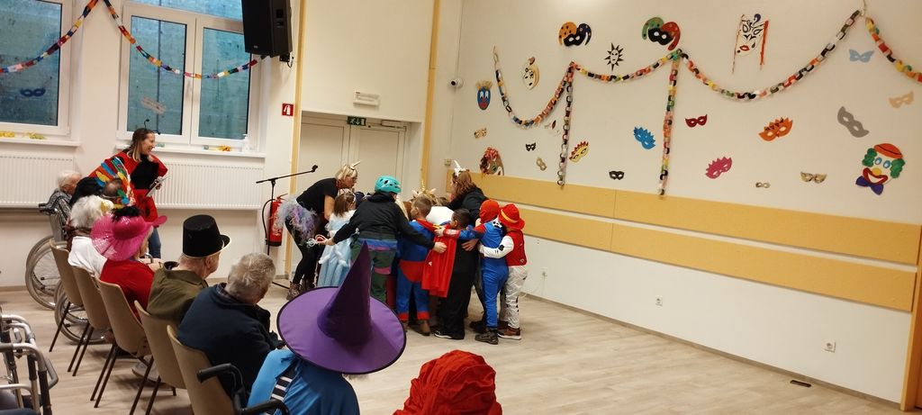 Pester pustni program so z obiskom polepšali otroci iz Vrtca Plavž, ki so nam zapeli tri pesmi in zaplesali na pesem Traktor. Stanovalci so bili nad nastopom navdušeni, nekateri celo ganjeni.