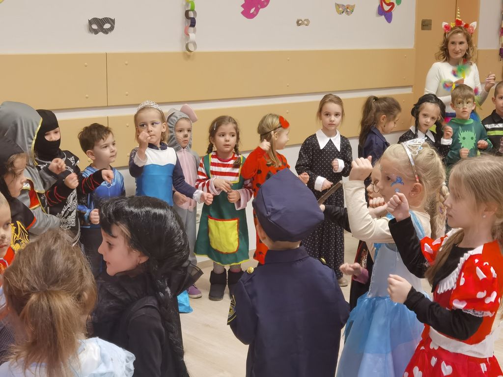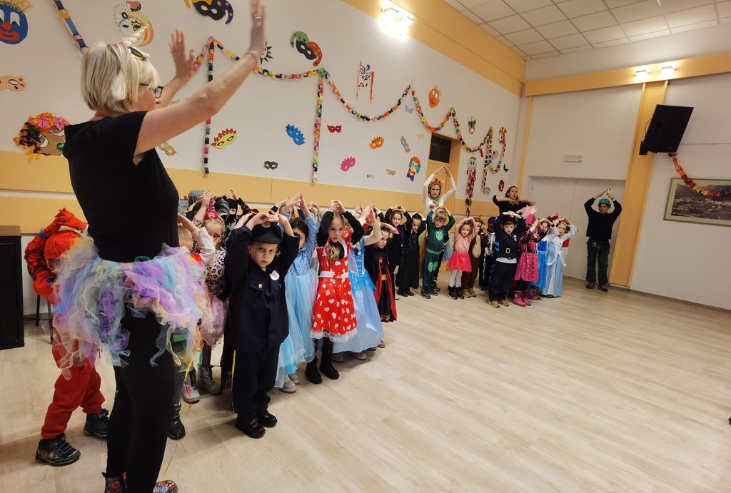 Stanovalcem, ki se pustnega rajanja niso udeležili, so se preostale pustne maske iz vrtca predstavile pred stavbo A, kjer so jim tudi zapeli nekaj pesmi.