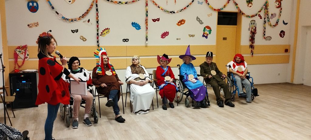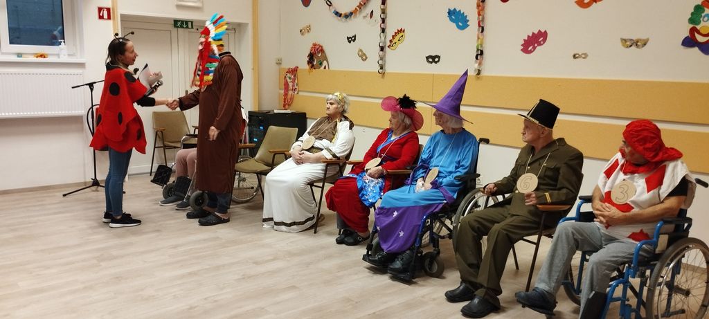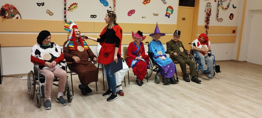 13. februarja smo v Domu upokojencev dr. Franceta Bergelja Jesenice organizirali pustno rajanje za stanovalce. Veliko stanovalcev se je obleklo v pustne kostume, nekateri so bili celo pripravljeni tekmovati za najboljšo pustno masko. Tekmovalne maske so se nam predstavile, občinstvo pa je glasovalo za najboljšo masko po njihovem okusu. Zmagal je naš stanovalec g. Milan, ki je predstavljal indijanskega poglavarja. Za glasbeno popestritev in pustno rajanje je poskrbel naš prostovoljec g. Tone Dremelj.