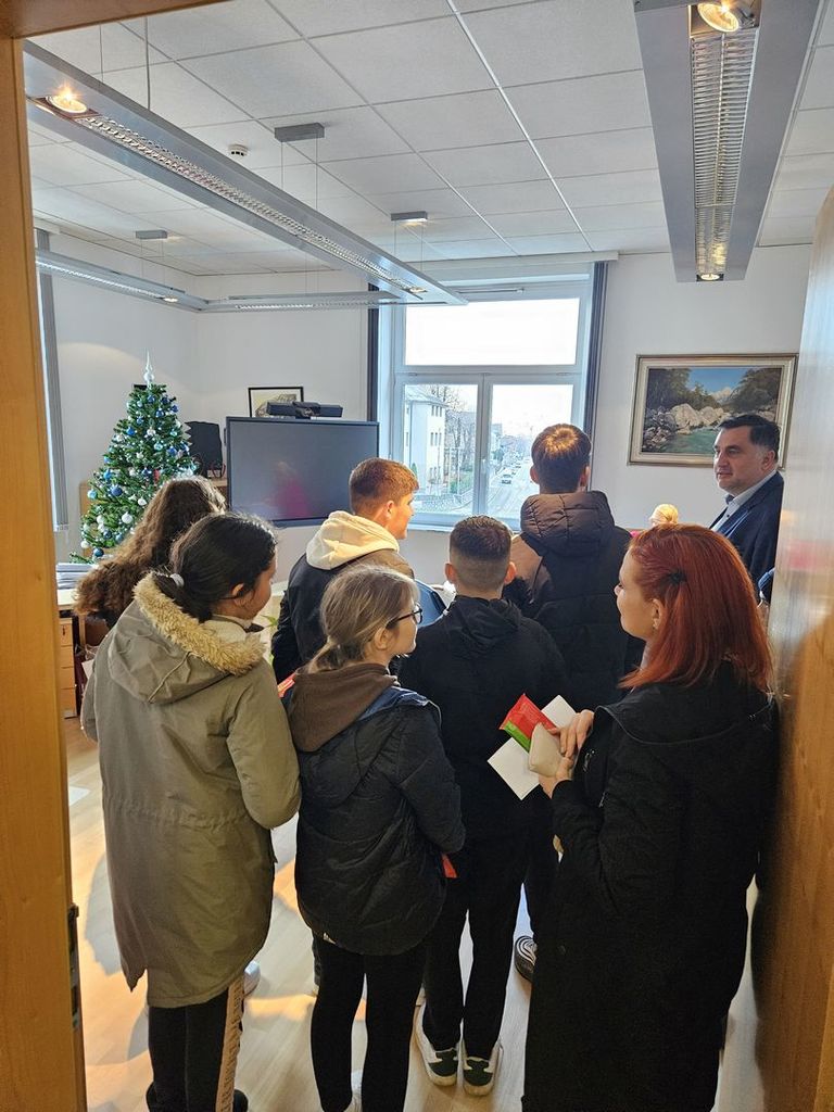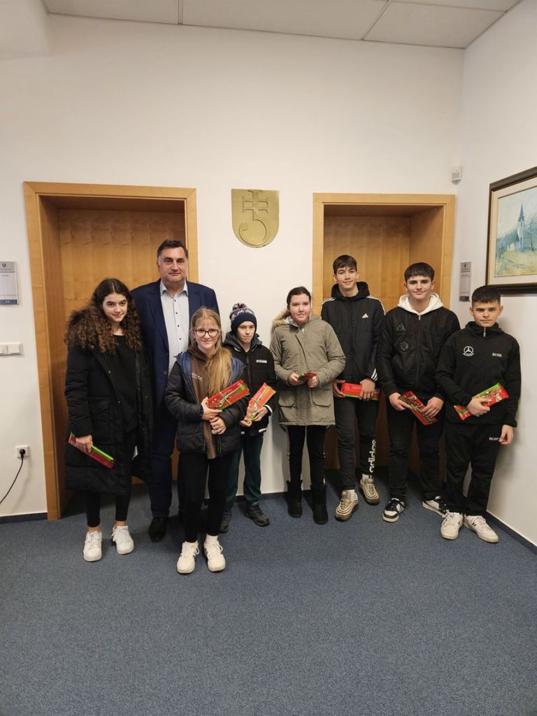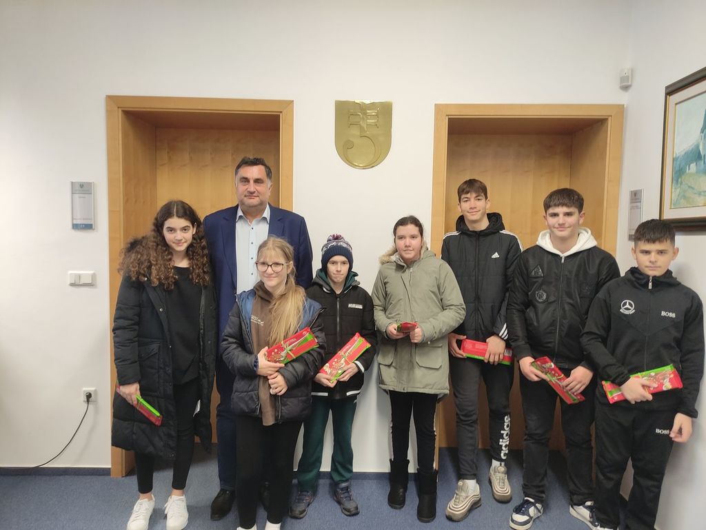 Mladi obiskovalci so županu razložili, da so 50 božično-novoletnih voščilnic izdelale učenke in učenci 6. razreda.