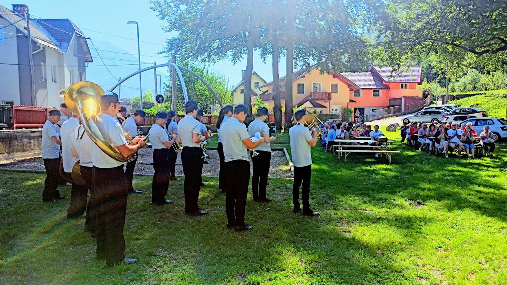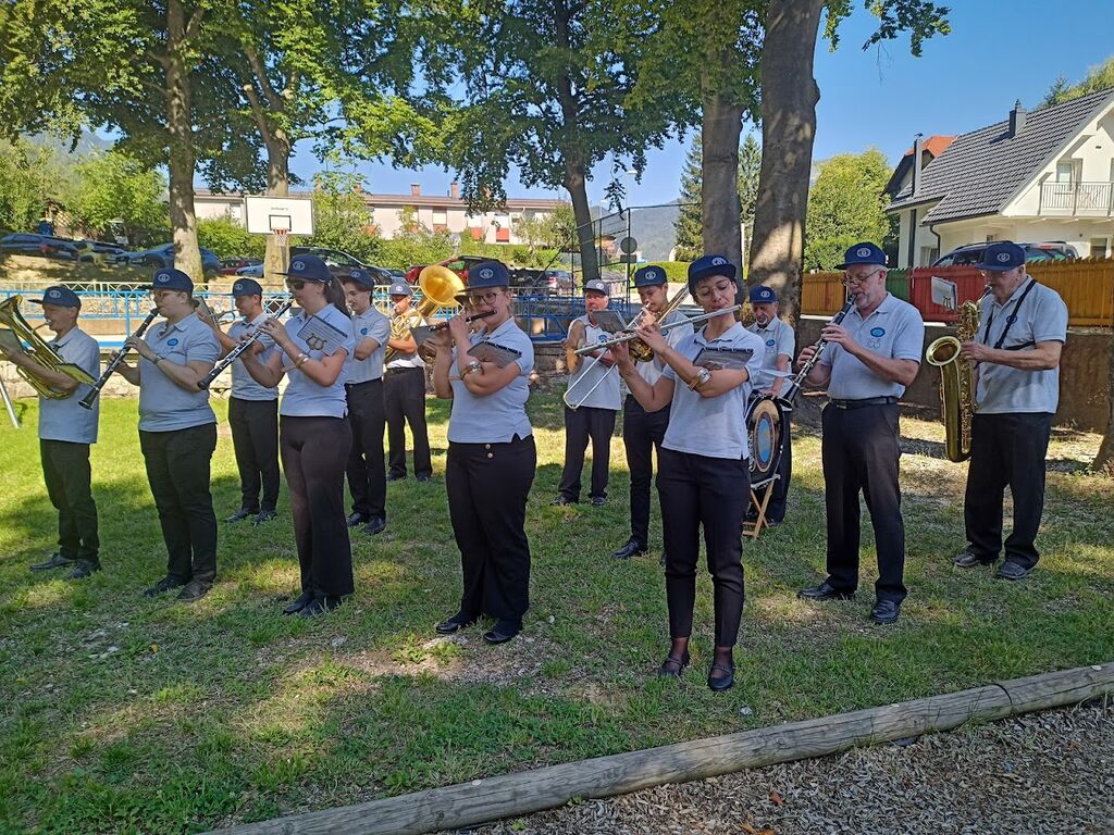V kulturnem programu v Športnem parku Podmežakla je nastopil Pihalni orkester Jesenice – Kranjska Gora.