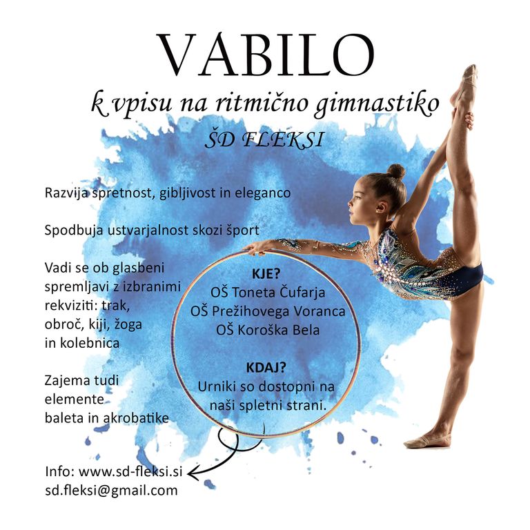 Vabljeni k vpisu na ritmično gimnastiko ŠD Fleksi.