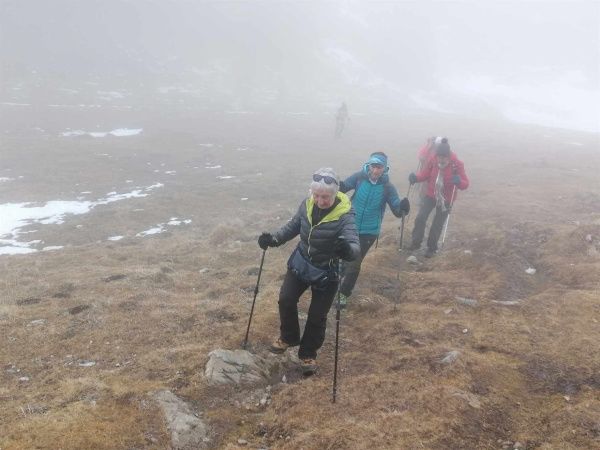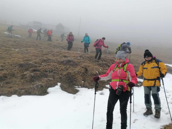 Po kratkem postanku in okrepčilu smo se odpravili nazaj preko Leševske planine. Megla in sneg na poti, do planine in nižje, nam je samo popestrilo dnevno dogajanje. Pod Leševsko planino smo se ustavili ob obeležju, v spomin vandrovcu Ramuš Andreju, ki je leta 2019 ( 3. marca ), prav tako na pohodu z Vandrovci, doživel srčni zastoj in mu podlegel. Mimo Bistriške planine smo se po bližnjicah spustili nazaj v Bistrico pri Tržiču.