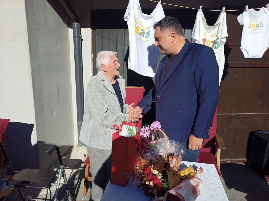 Vsi so najstarejši prebivalki segli v roke in ji naprej zaželeli vse najboljše. Čestitkam in željam za dobro zdravje se je pridružil župan občine Jesenice mag. Peter Bohinec s podžupanjo Tino Repovž in Matejo Drobič, predsednik Društva upokojencev Jesenice Stevo Ščavničar ji je izročil listino Častna članica, ki jo namenijo vsem, ki dopolnijo sto let. Čestitali so ji predstavniki društev in drugi, ki jo poznajo in so z njo sodelovali. Mihaela je bila ob svojih obveznostih v domači umetni obrti dejavna v kar enajstih društvih. Za vedrejše vzdušje so poskrbeli člani Folklorne skupine Juliana s Hrušice.