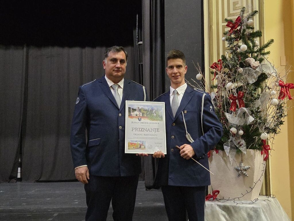 Župan občine Jesenice mag. Peter Bohinec je dirigentu Dejanu Rihtariču podelil županovo priznanje za neprecenljiv prispevek pri uresničitvi projekta Ljudska zgodba, s katerim je na izviren način posodobil ljudsko glasbo in jo približal širšemu krogu poslušalcev. Ob tej priložnosti se je pridružil tudi prazničnim čestitkam ter izrekel najlepše želje ob vstopu v novo leto 2026.
