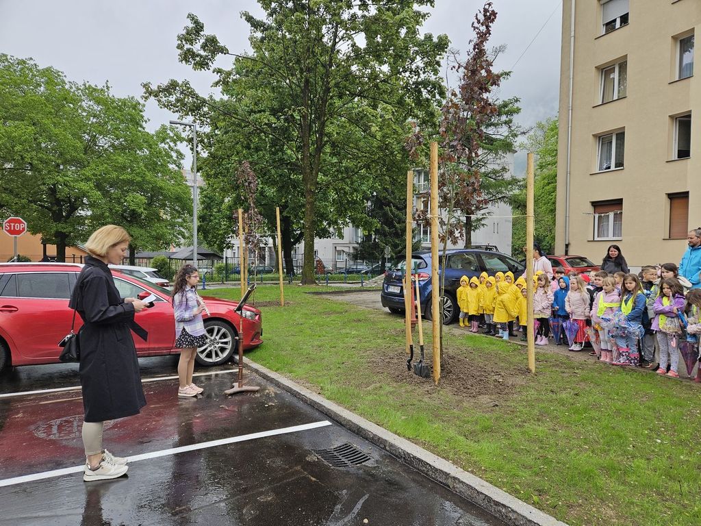 Podžupanja Tina Repovž je pred zasaditvijo pozdravila otroke in druge krajane. V nagovoru je izrazila veselje ob zasaditvi dreves na novo urejenem parkirišču, ki ga je označila kot majhen, a pomemben korak k bolj zelenemu in prijaznemu prostoru za vse nas.