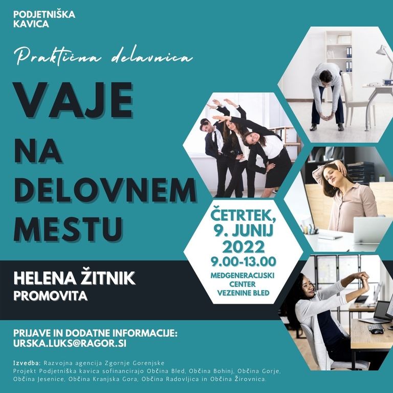 • brezplačno praktično delavnico VAJE NA DELOVNEM MESTU.