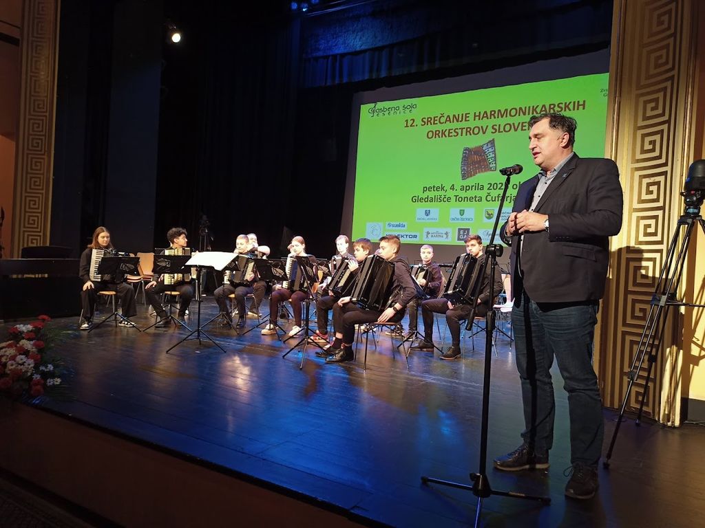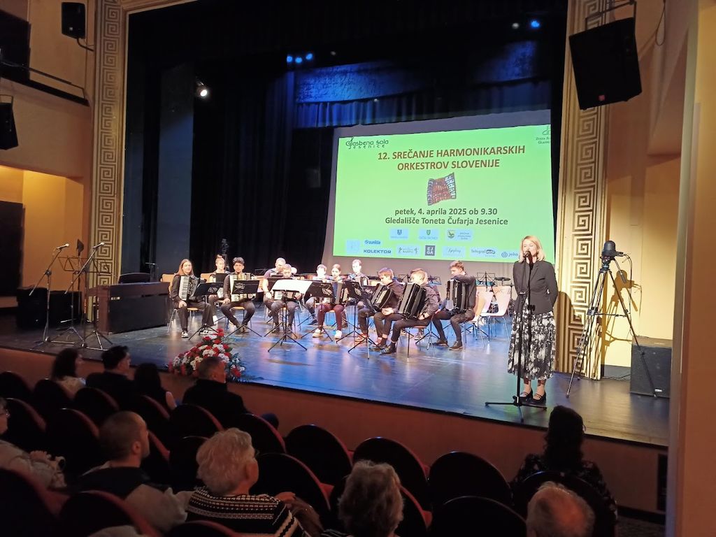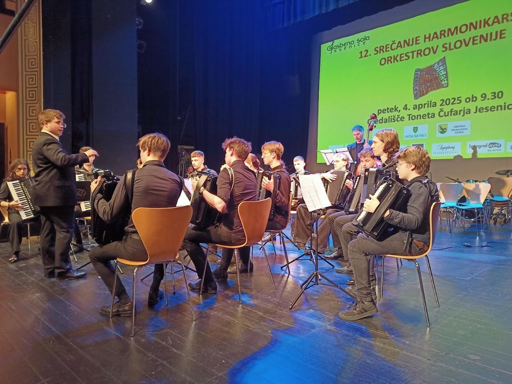 V osrednji jeseniški gledališki hiši so v petek, 4. aprila, odmevali zvoki harmonik. Glasbena šola Jesenice je gostila 12. srečanje harmonikarskih orkestrov Slovenije, ki poteka bienalno vse od leta 2001.
