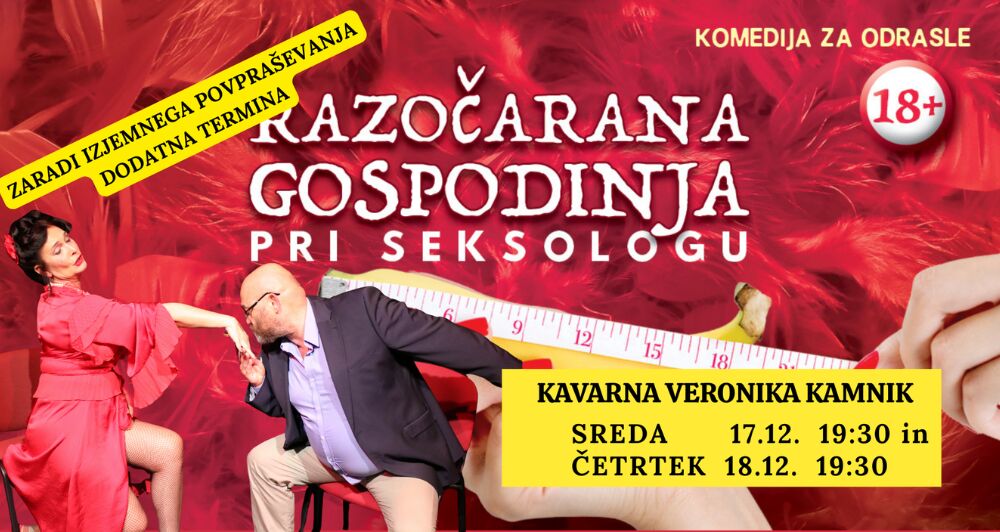 Ekskluzivno v Kavarni Veronika v Kamniku- dodatna termina najbolj hiperseksualne komedije (18+) vseh časov v Sloveniji - RAZOČARANA GOSPODINJA PRI SEKSOLOGU