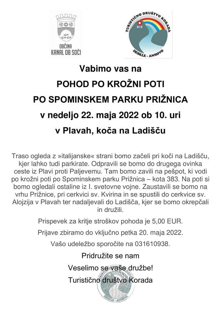 POHOD PO KROŽNI POTI PO SPOMINSKEM PARKU PRIŽNICA