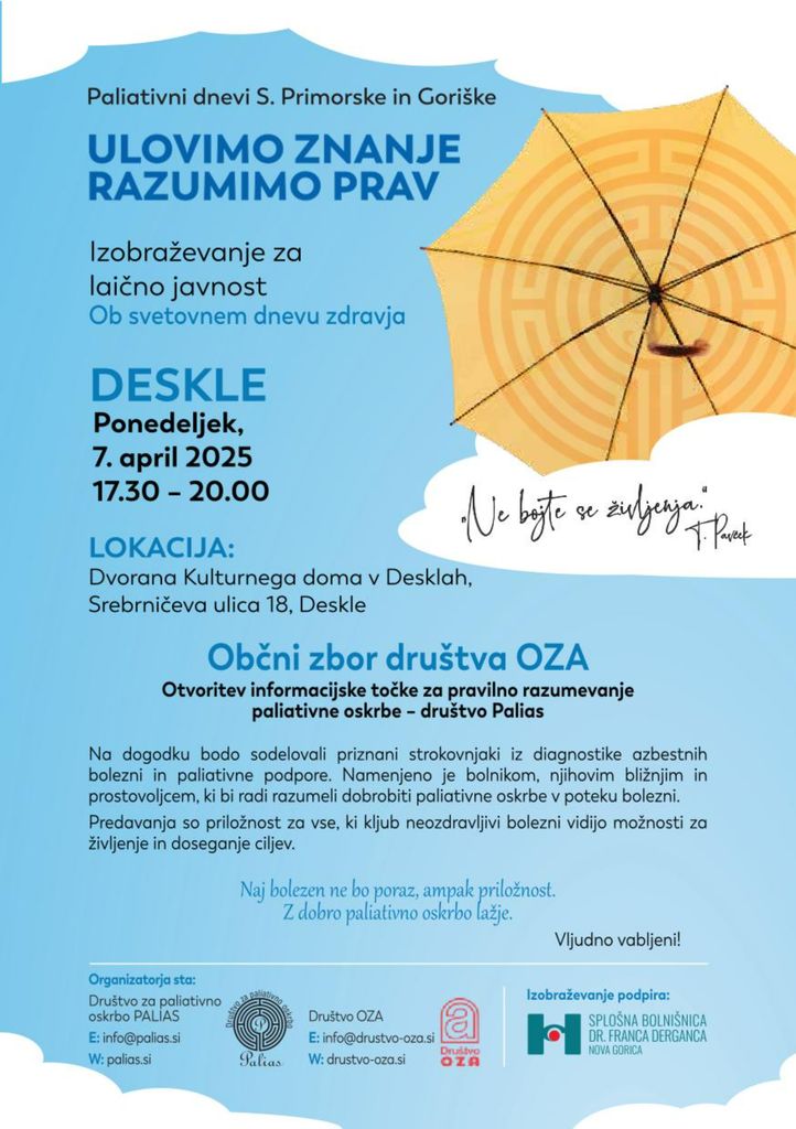 Pomoč azbestnim bolnikom in paliativni dnevi Severne Primorske in Goriške