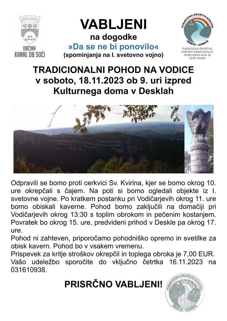 Kontaktni podatki organizatorja: Turistično Društvo Korada Deskle - Anhovo, tdkorada@gmail.com, +386 (0)31 610 938.