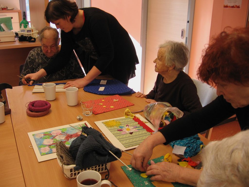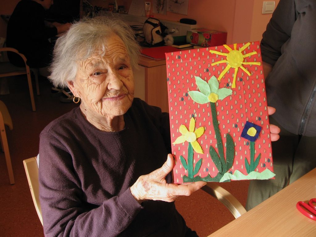 Ko smo Tince prišle na obisk, so varovanke ravno ustvarjale vizitke za gospo Marijo, ki je prav ta dan praznovala rojstni da
