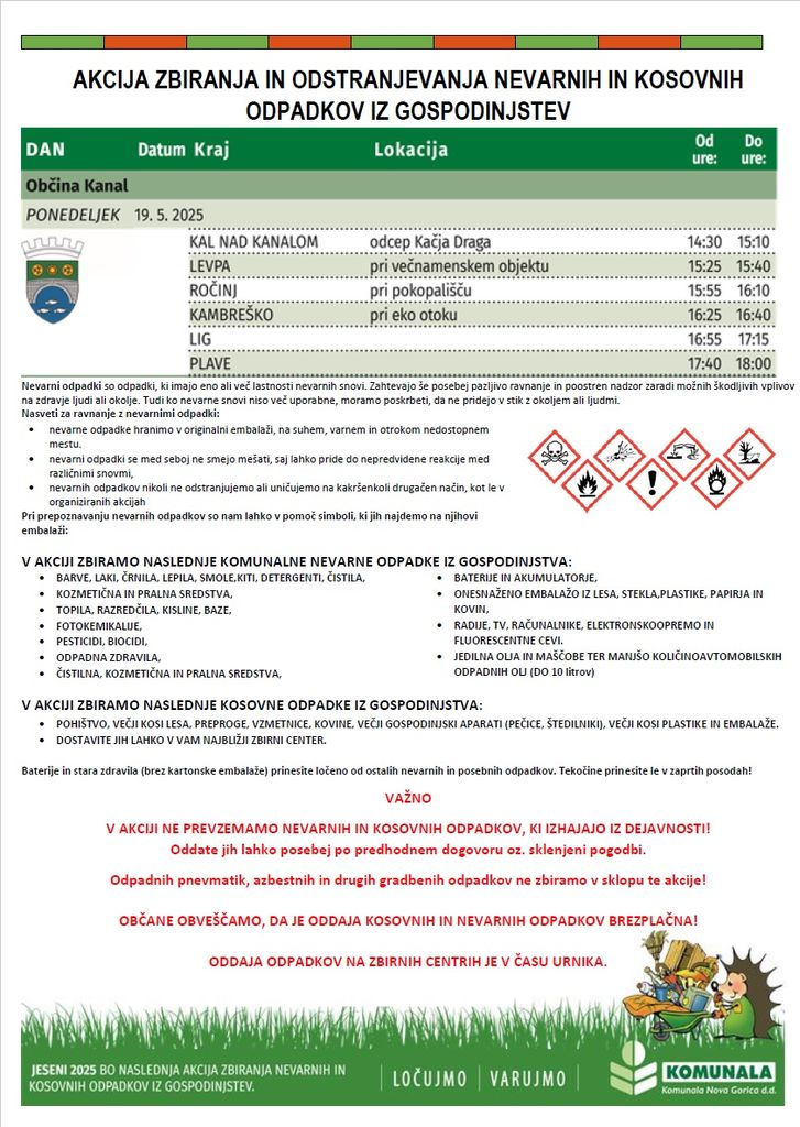 Akcija zbiranja in odstranjevanja nevarnih in kosovnih odpadkov iz gospodinjstev