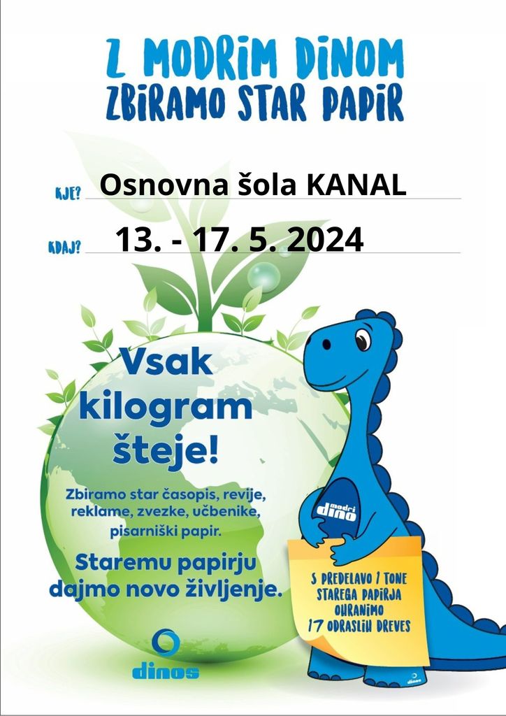 Zbiranje starega papirja pred Osnovno šolo Kanal