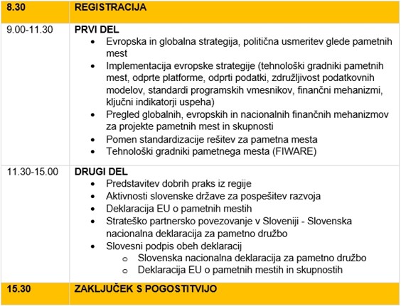 Namen konference je predstavitev prednosti širokega povezovanja, potrebnih aktivnosti v procesu vzpostavitve pametnega mesta ter dobrih domačih in tujih praks, izpostavljeni pa bodo tudi evropski finančni mehanizmi, ki bodo v bližnji prihodnosti zagotavljali sredstva za vzpostavitev pametnih mest.