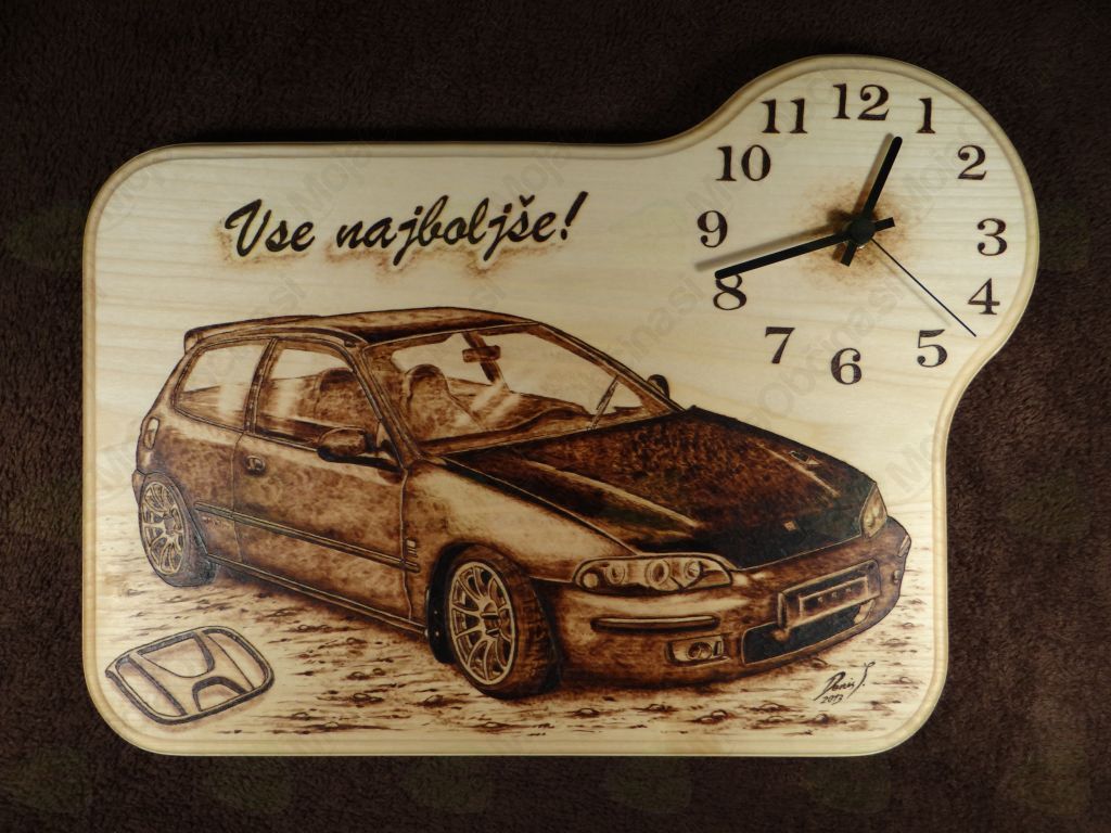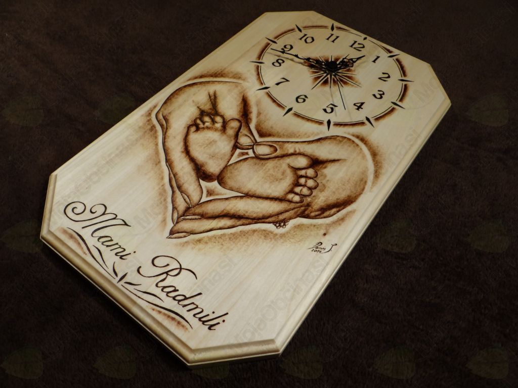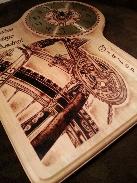 Začne se s pogovorom s stranko o primernem izdelku. Najpogostejša naročila so darila za različne priložnosti (rojstni dnevi, krsti, poroke), ko ljudje radi podarijo nekaj posebnega. Na primer unikatno vžgan motiv na masivnemu lesu z dodano uro. V delavnici najprej obdelam leseno podlago, ki je iz lipovega lesa. Pri vsakem projektu si vzamem čas in poskušam biti z izdelavo različnih oblik čim bolj izviren. Ko imam pripravljeno podlago, sledi risanje. Nekatere motive rišem prostoročno, pri drugih prenesem motiv na les z indigo papirjem. S pirografom nato črtam in senčim, dokler nisem zadovoljen s končnim izdelkom. Sledi še premaz voska, darilno zavijanje in izdelek je pripravljen za prevzem.
