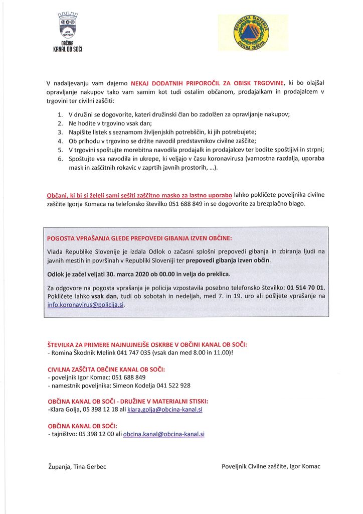 Pripadniki civilne zaščite, člani PGD ter drugi prostovoljci bodo od danes dalje delili maske po vseh gospodinjstvih v občini Kanal ob Soči. Vsako gospodinjstvo bo prejelo eno masko za večkratno uporabo.