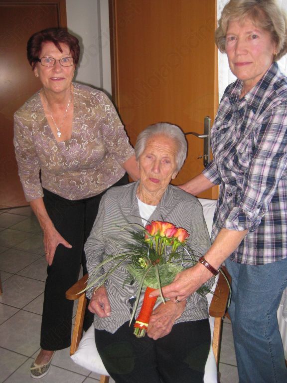 Ob častitljivem jubileju sta ji na njenem domu čestitala tudi župan Andrej Maffi in predsednik društva upokojencev Kanal Franc Komac.