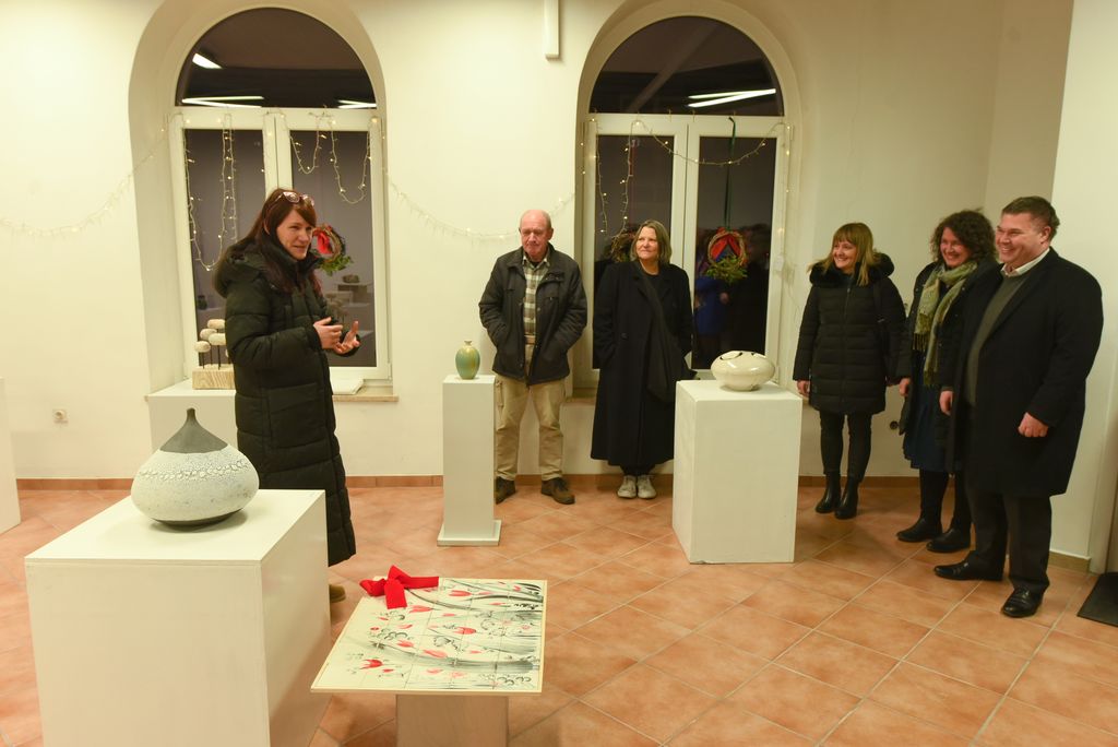 Ne le lepo, veličastno je bilo. Prenovljeni, svetli, topli prostori, praznično okrašeni, miza, polna dobrot in dovršeno likovno vabljiva v Dragijevi maniri, ki se je ne bi branil niti kak nosilec Michelinove zvezdice, lepo postavljena razstava z nekaj izjemnimi deli, obisk predstavnikov občine, kratek, a prisrčen govor vidno zadovoljnega kanalskega župana, druženje in odzivi. »Fotografije naših skupnih projektov, ki kličejo po nadaljevanju, pa so mišljene kot vzpodbuda za naprej in pohvala za nazaj. Ploščice so darilo občini za prenovo delavnice, ki se bo nadaljevala s prenovo galerije, na kar smo seveda zelo ponosni. In hvaležni. Hvaležni smo tudi vsem pogajalcem iz Kluba in seveda izvajalcem prenove. In vsem, ki ste zraven pomagali,« pove predsednica Nika na odprtju razstave.