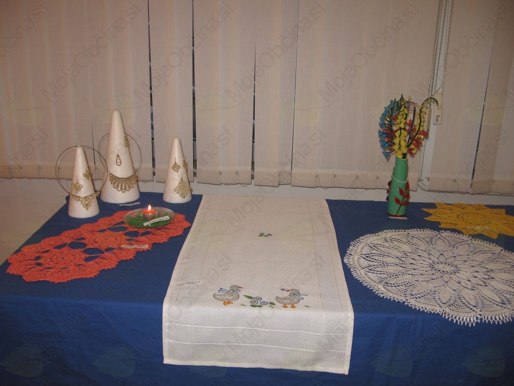 Na razstavi smo lahko občudovali res mojstrske stvaritve članic krožka ročnih del – od prtičkov, kvačkanih, klekljanih, vezanih do umetelno izdelanega cvetja. Zelo lepe izdelke iz lesa, izrezljane jaslice nam je pokazal  Emil Blažič, ki za svoje izdelke uporablja predvsem les oljke in drena.