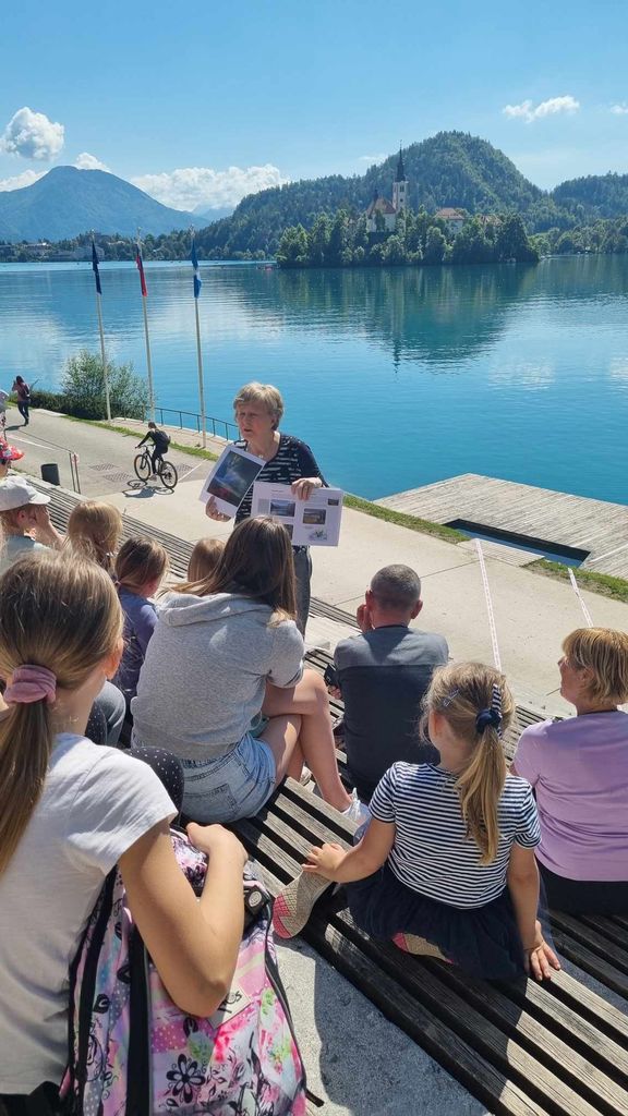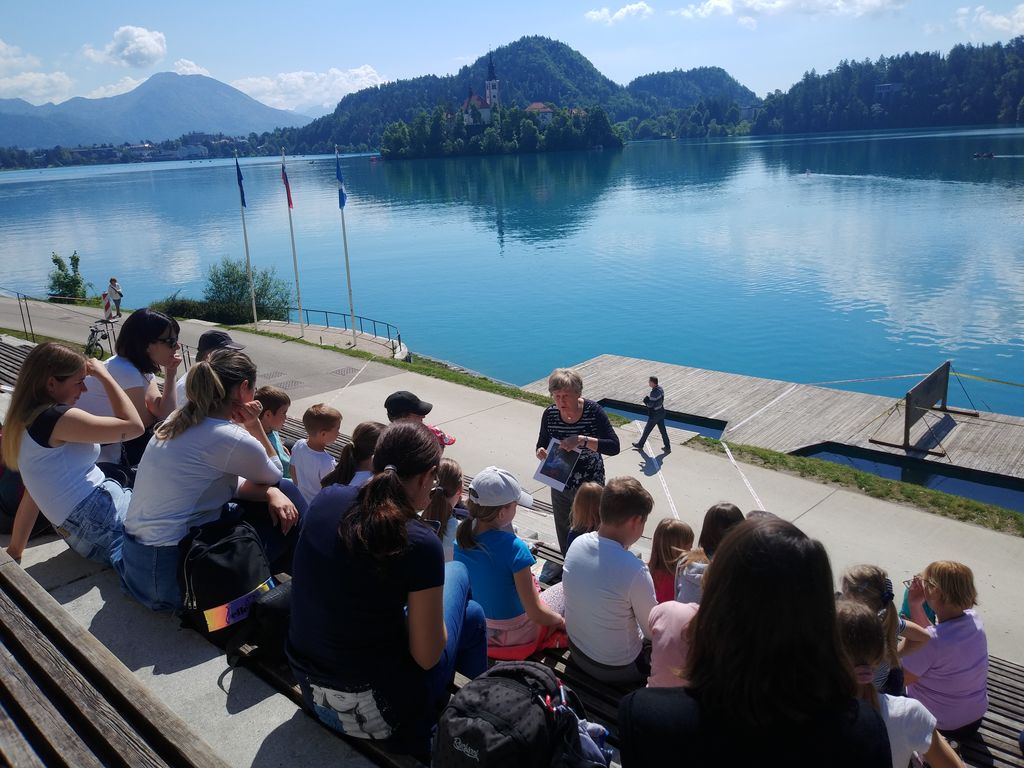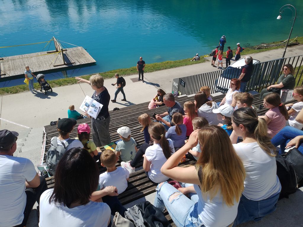 Pravljična urica na Bledu, na prostem in to z znano pisateljico, to pa je nekaj posebnega. Tudi za tokratno dogajanje je najbolj zaslužna Marja Dolhar Batistič. Najprej smo se sprehodili do tribun veslaškega centra v Zaki. Nekateri so hitro vzeli dobrote iz svojih nahrbtnikov, drugi pa spremljali tekmovalce mednarodne dirke Spartan, ki se je ravno ta vikend odvijala na Bledu, nekateri pa le občudovali jezero, račke, otoček. Nismo dolgo čakali in pridružila se nam je profesorica slovenščine in pedagogike, pisateljica Barbara Hanuš, ki veliko piše za otroke in pa tudi za odrasle, je strokovna sodelavka revij Ciciban in Cicido, piše učbenike za osnovno šolo in še bi lahko naštevali. Najprej nam je predstavila nekaj legend o Bledu in okolici, potem nam je pripovedovala o svojih vnukih in kako so nastajale zgodbice, nekaj nam jih tudi prebrala. Otroci so ji z zanimanjem prisluhnili, še posebej navdušeni so bili nad Kevinovimi oslički, ki nastopajo v novi zgodbi, le-ta bo izšla v mesecu juniju. V zahvalo, da si je vzela čas za nas ji je Marja podarila zelen dežnik, da jo bo spominjal na reko Sočo (dar ZTKŠM Kanal) in kabrco. »Vaše darilo je čudovito, dobro ste sklepali, s čim bi me lahko razveselili« je kasneje zapisala ga. Barbara.