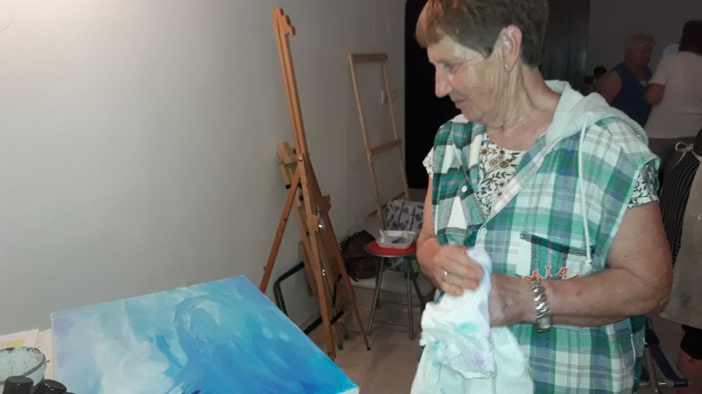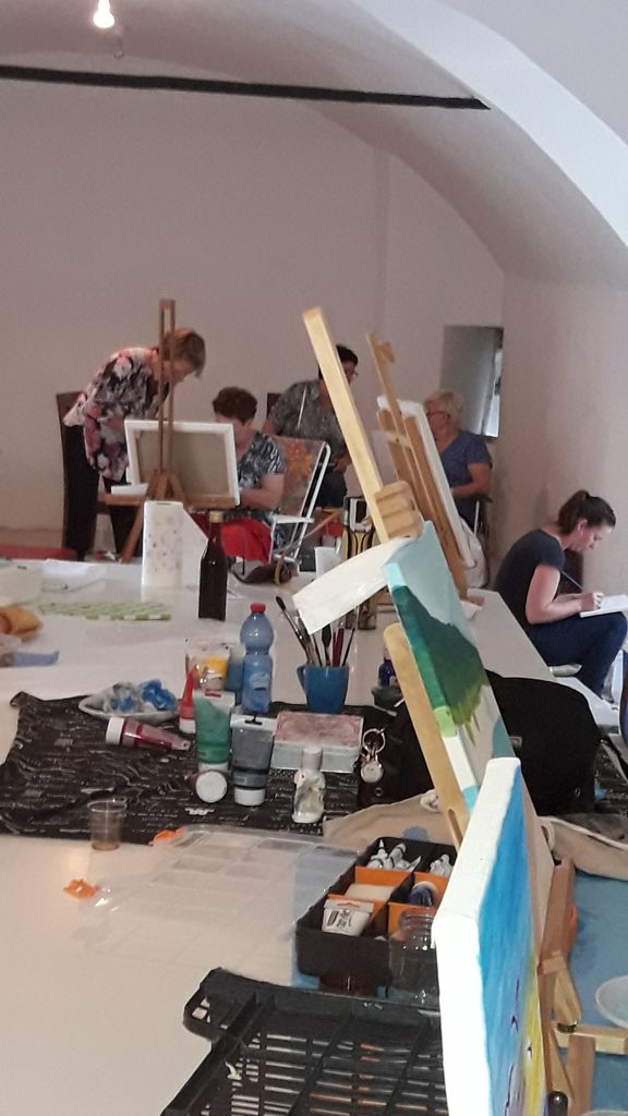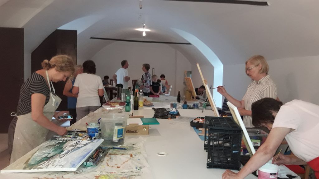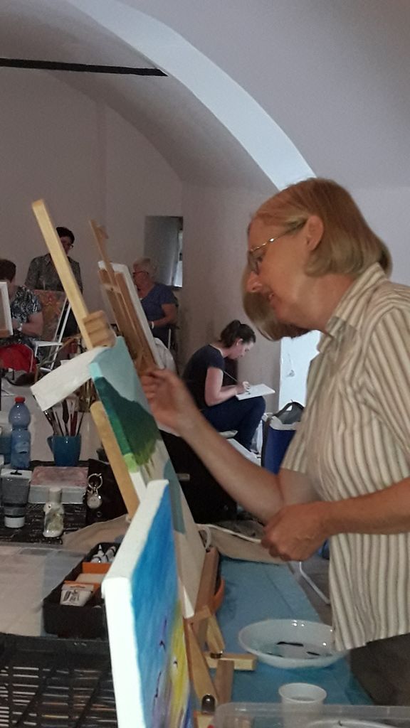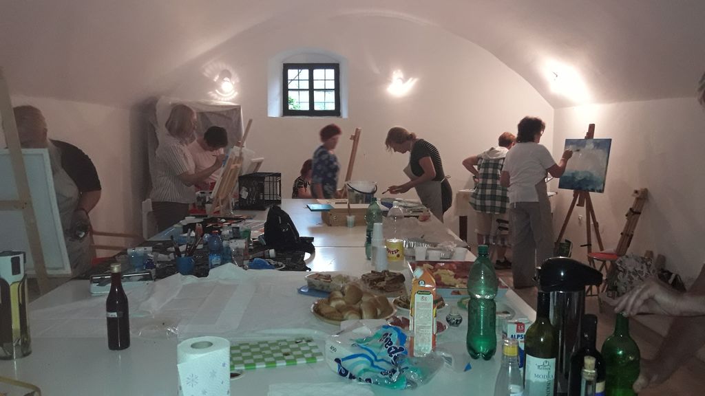 Svetloba v dovolj velikem prostoru za 26 slikarjev z vso slikarsko opremo resda ni bila pravšnja za slikanje, vendar se nismo pritoževali. Pomembno je bilo, da smo imeli streho nad glavo in dobro voljo za nemoteno ustvarjanje.