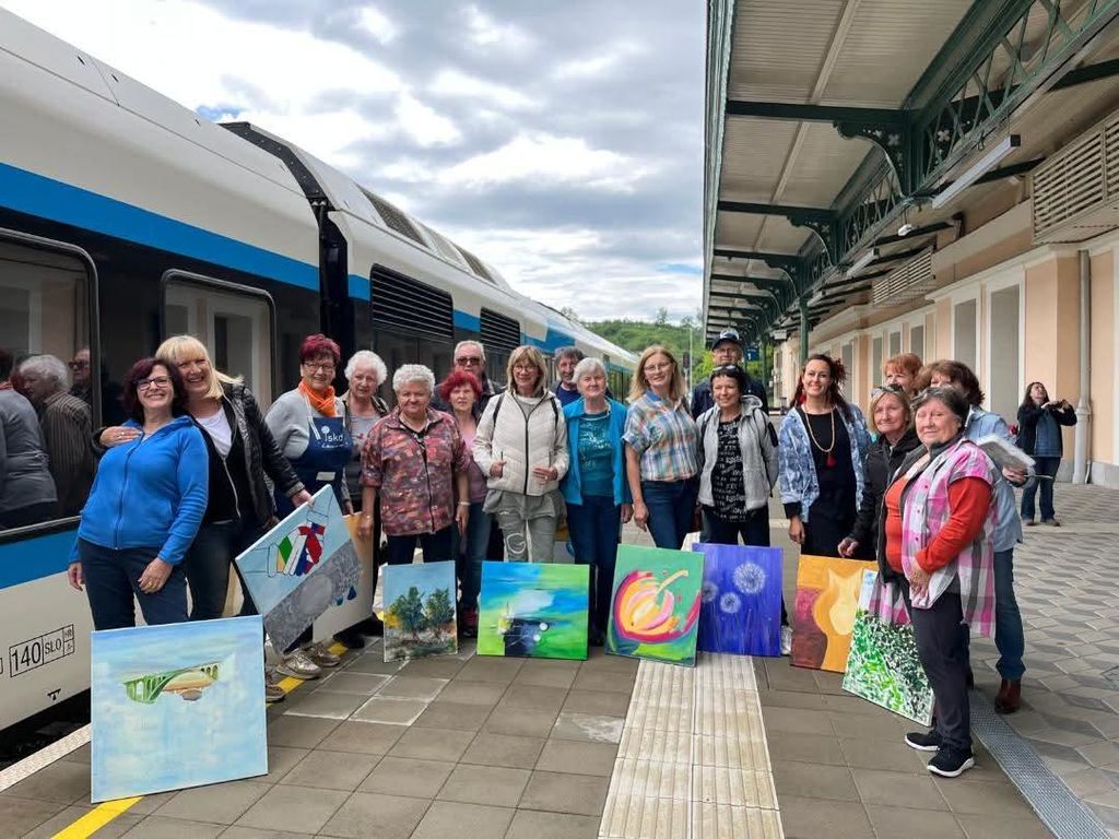 Že drugo leto zapored smo se 31. maja 2025 odpeljali z vlakom na blejsko Akvareliado 2025. Na železniški postaji Bled jezero so nas pričakali gostoljubni šoferji slikarskega društva Atelje Bled ter nas z avtomobili odpeljali do njihove galerije.