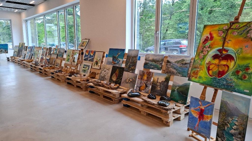 Preko petdeset slikarskih del smo razstavili na nenavaden način. Slike smo postavili na palete, pa ne tiste slikarske, temveč palete za prevoz embalaže. Veliko halo, kjer so obiskovalci pred ogledom cementarne prisluhnili predstavitvi, so krasile slike različnih tehnik in motivov, kar je nedvomno obogatilo pester program s poudarkom na športnih, kulturnih in izobraževalnih vsebinah.