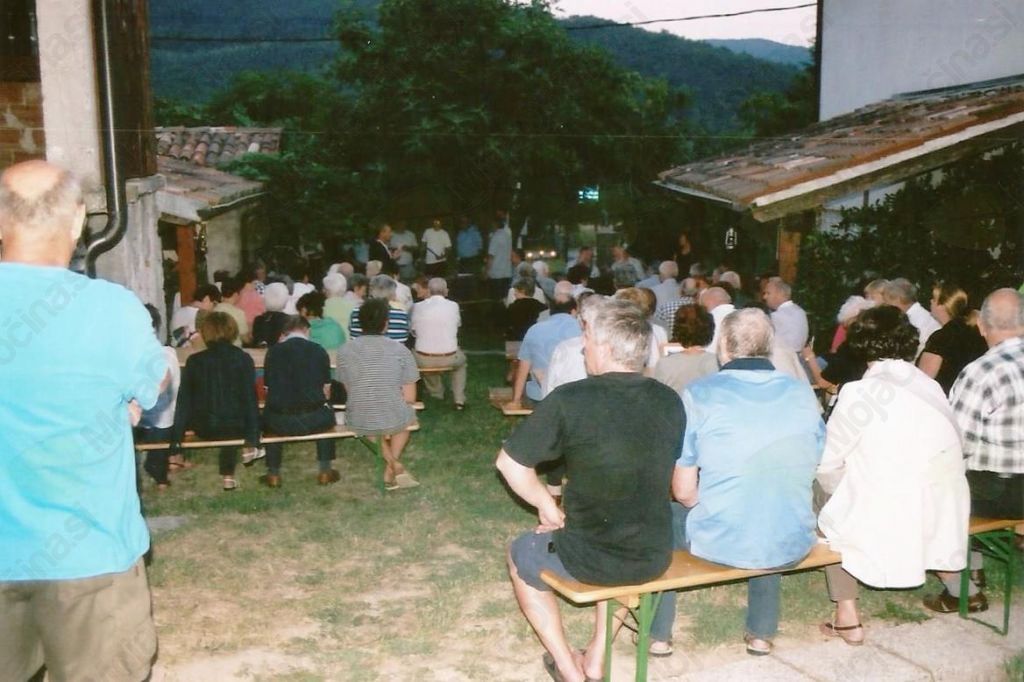 Na "brjaču pr Kocjenčičevih" so se zbrali vsi, ki so želeli jubilantu voščiti za rojstni dan. Topla zvezdnata noč je privabila okrog 130 obiskovalcev. Na začetku je pozornost prisotnih pritegnil Lovro Tinta z glasbenim nastopom. Nato jih je pozdravil predsednik Krajevne skupnosti Anhovo-Deskle, domačin Klemen Stanič. Sledil je pozdravni govor z voščilom še enega domačina, tokrat župana Andreja Maffija.