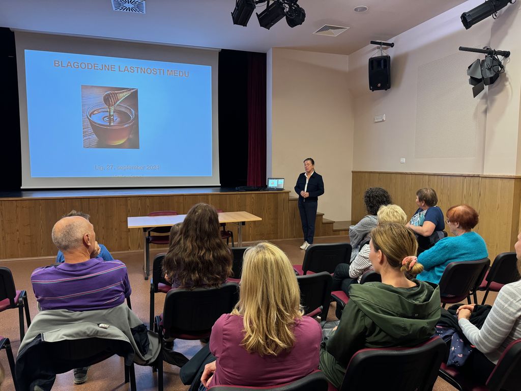 Srečanje se je pričelo z ogledom čebelnjaka Vladimirja Žnidarčiča v Britofu, potem pa je v Kulturnem domu Lig sledila delavnica izdelovanja okrasnih dišečih sveč iz čebeljega voska. Ko so bile svečke dokončane, nam je naturopatinja Katja Kogej v zanimivem predavanju predstavila pozitivne učinke medu na zdravje in počutje. Dogodek smo zaključili s pokušino okusnih medenih dobrot.