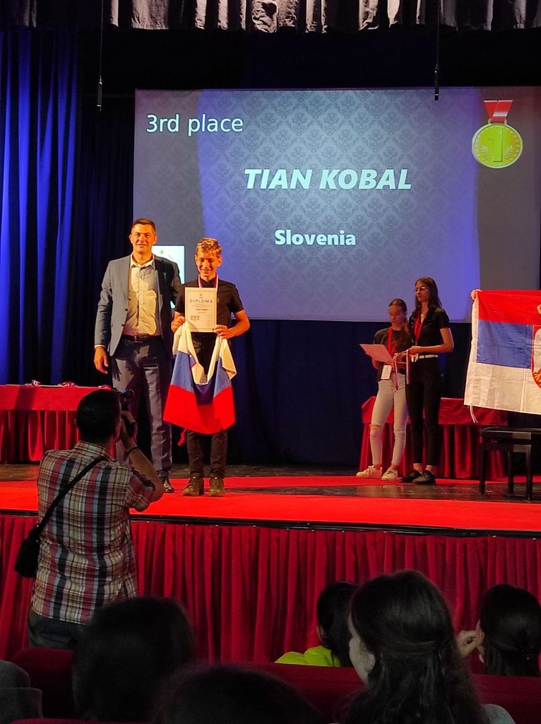 Tian Kobal iz Plavi, učenec 9. razreda Osnovne šole Milojke Štrukelj Nova Gorica, se je letos že drugo leto zapored udeležil Evropske geografske olimpijade (EGeO) 2024, ki je potekala od 28. 6. do 4. 7. 2024 na Kopaoniku v Srbiji. Na olimpijadi je za odlično 3. mesto prejel zlato medaljo.