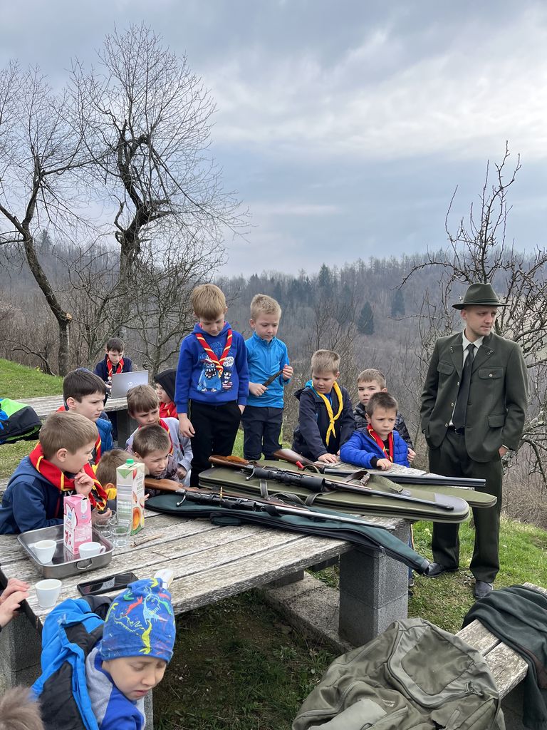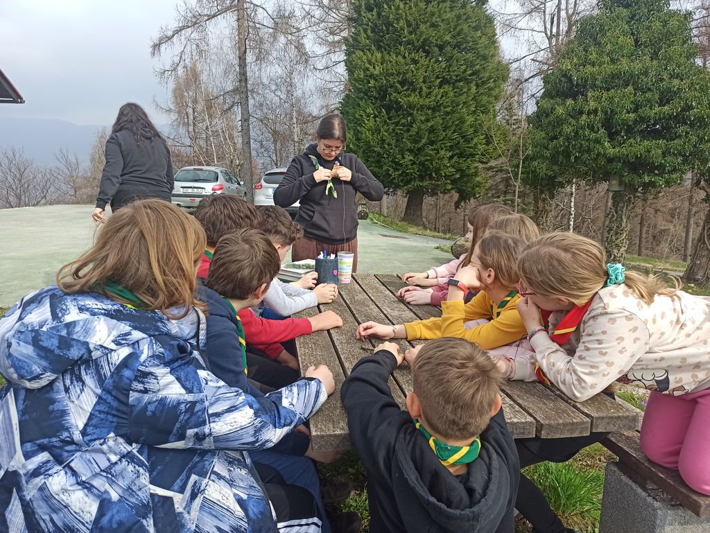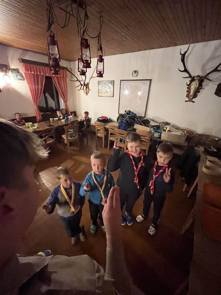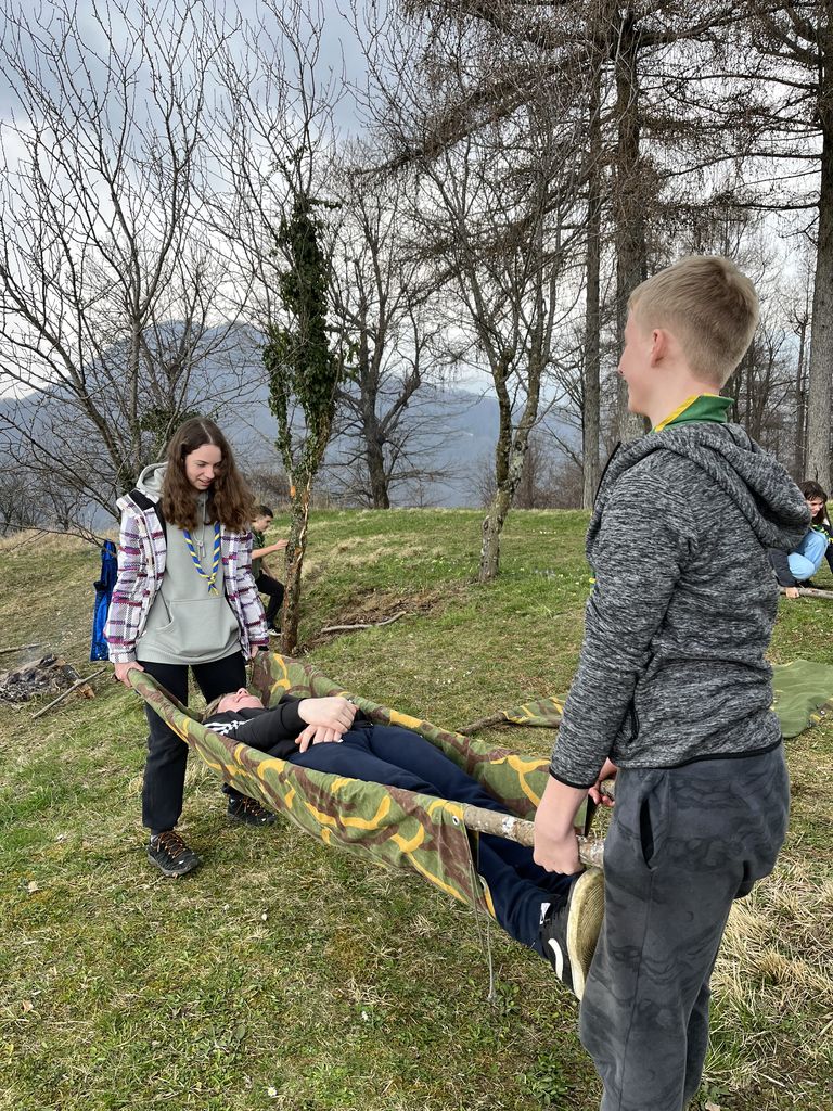 V marcu smo taborniki vikend preživeli na zimovanju v lovski koči na Srednjem. Začeli smo v petek popoldan s pripravo kurišča in ognja, ter postavitvijo šotora za starejše GGje. Po večerji nam je Ela prinesla odlične domače buhteljne,ki jih je sama spekla, mi pa smo jih z veseljem pojedli. V soboto so se nam pridružili tudi najmlajši taborniki. GGji smo jih učili uporabo šotorke, ter vozle. Pri tem smo med seboj imeli izziv kdo jh več nauči. Delali smo tudi pionirske objekte, risali skico terena, imeli lovca na obisku, ki je mlajšim razložil in pokazal, kaj je njihova naloga v gozdu in pri živalih. MČjem smo pripravili tudi lov na lisico. Zaradi lepega vremena in dobre družbe je dan kar prehitro minil. Po večerji smo imeli podelitev rutk in taborniški krst. Noč so starejši GGji tako kot prejšnjo prespali v šotoru in pazili, da ne ugasne ogenj, vendar smo se jim tokrat pridružile tudi punce. V nedeljo po zajtrku smo GGji odšli na daljši orientacijski pohod, kjer so nas čakale različne naloge. Tokom celega zimovanja smo imeli tudi "mrhovinarski lov",na katerem smo poskušali starejši opravit čimveč nalog in tako zbrat točke. Na koncu je najboljši za učenje MČjev in v tekmovanju prejel posebno nagrado. Imeli smo se super in komaj čakamo na naslednje skupno druženje.