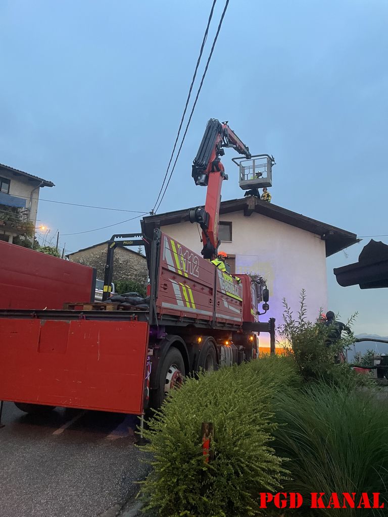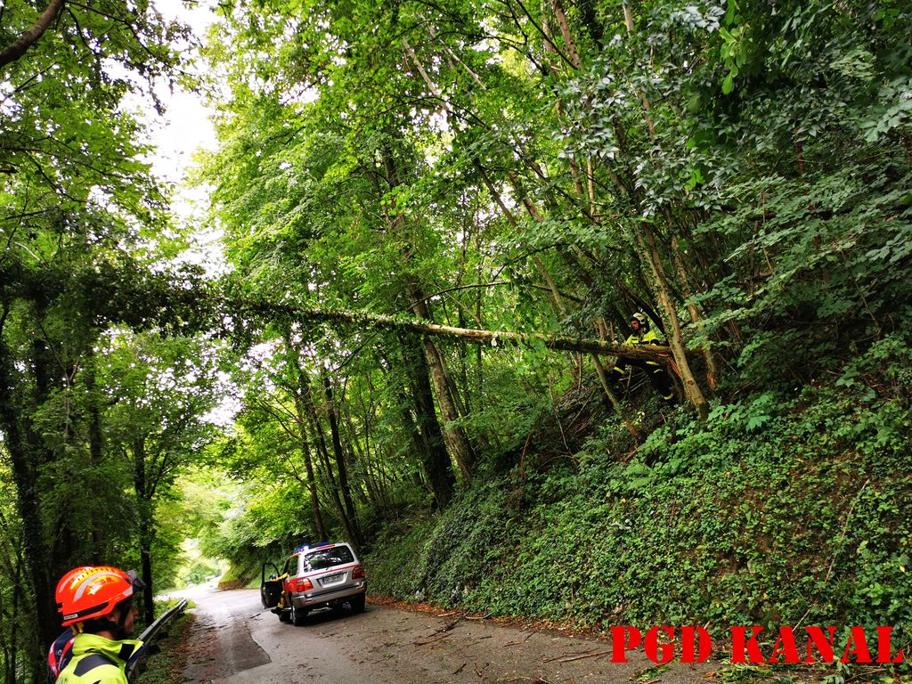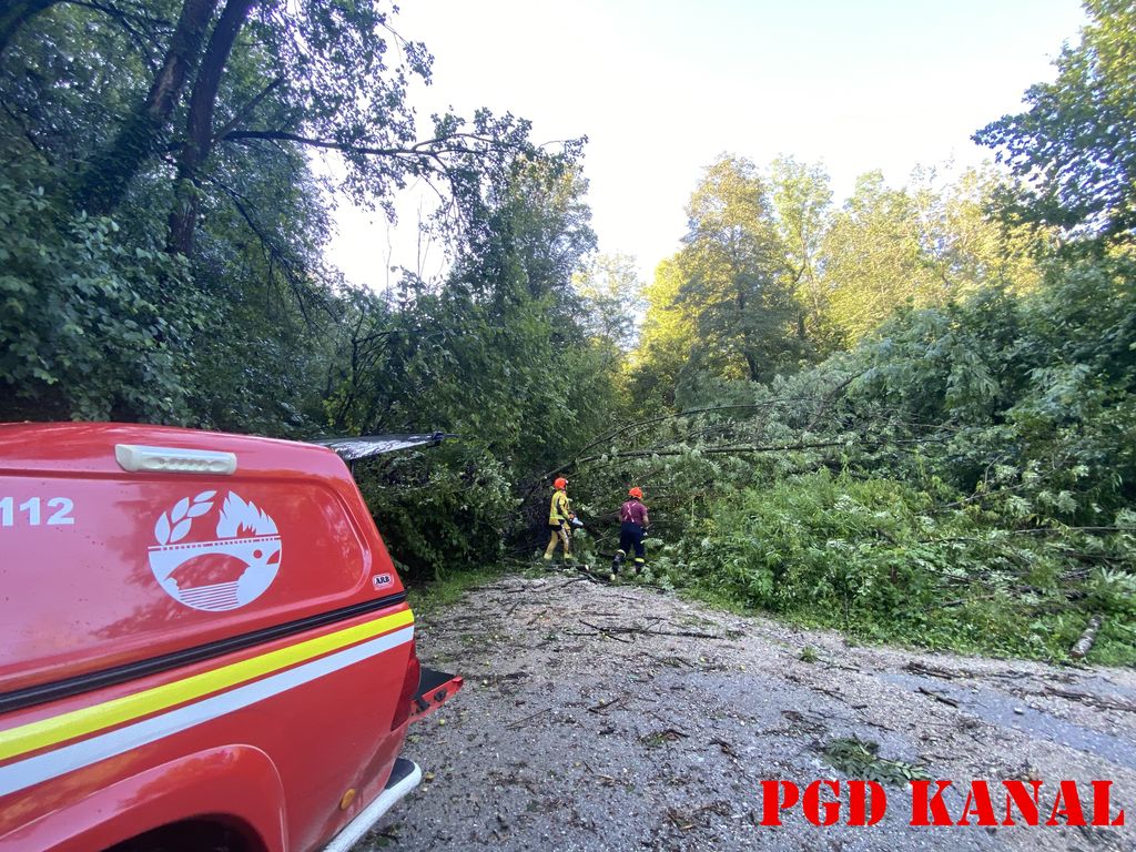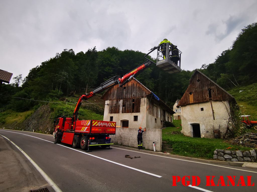 V ponedeljek 24.7. smo odstranili par novih padlih dreves na regionalni cesti Plave-Ročinj - Doblar. Naslednje jutro pa nas je zbudil pozivnik ob 5:10 za pomoč pri sanaciji objektov po neurju v Kostanjevici na Krasu in okolici. Izvozili smo z GVM-jem in avtodvigalom. Ravno po postavitvi dvigala in zavarovanju na strehi objekta pa nas je presenetila močna nevihta z velikimi sunki vetra zato smo se po hitrem postopku spustili z objekta in počakali, da gre mimo. Med čakanjem pa je ponovno zazvonil pozivnik. Tokrat je ta nevihta katera nas je presenetila prešla tudi našo občino in smo tako ob 8:00 zapustili Kostanjevico in so podali domov pomagat na naš teren. Bilo je veliko podrtih dreves in nekaj odkritih objektov (gospodarski objekt v Krajcu in Levpi, ter stanovanjski objekti v Kambreškem, Ročinju in Bodrežu), katere smo sanirali in pokrili z platni. Na pomoč so nam priskočili gasilci PGD Kobarid, PGD Breginj, PGD Avče in PIGD Salonit Anhovo. Na terenu so sodelovali tudi sekači, člani CZ Kanal, pogodbeniki CZ (podjetniki s stroji) ...
